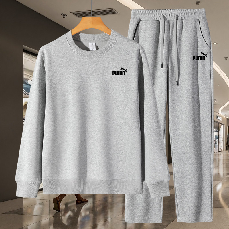 两件套潮 男加绒宽松圆领卫衣休闲裤 奥莱专柜春秋新款 运动休闲套装