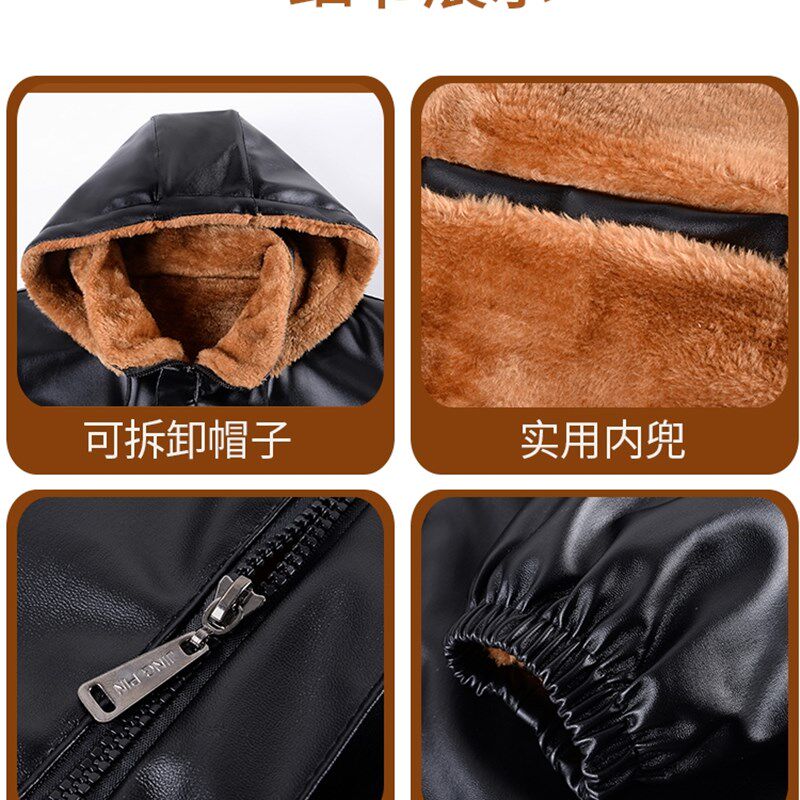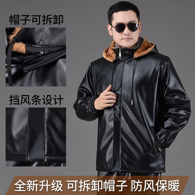 款 皮衣套装 男士 冬季 骑行外卖保暖外套 男加绒加厚防风防水工作皮裤