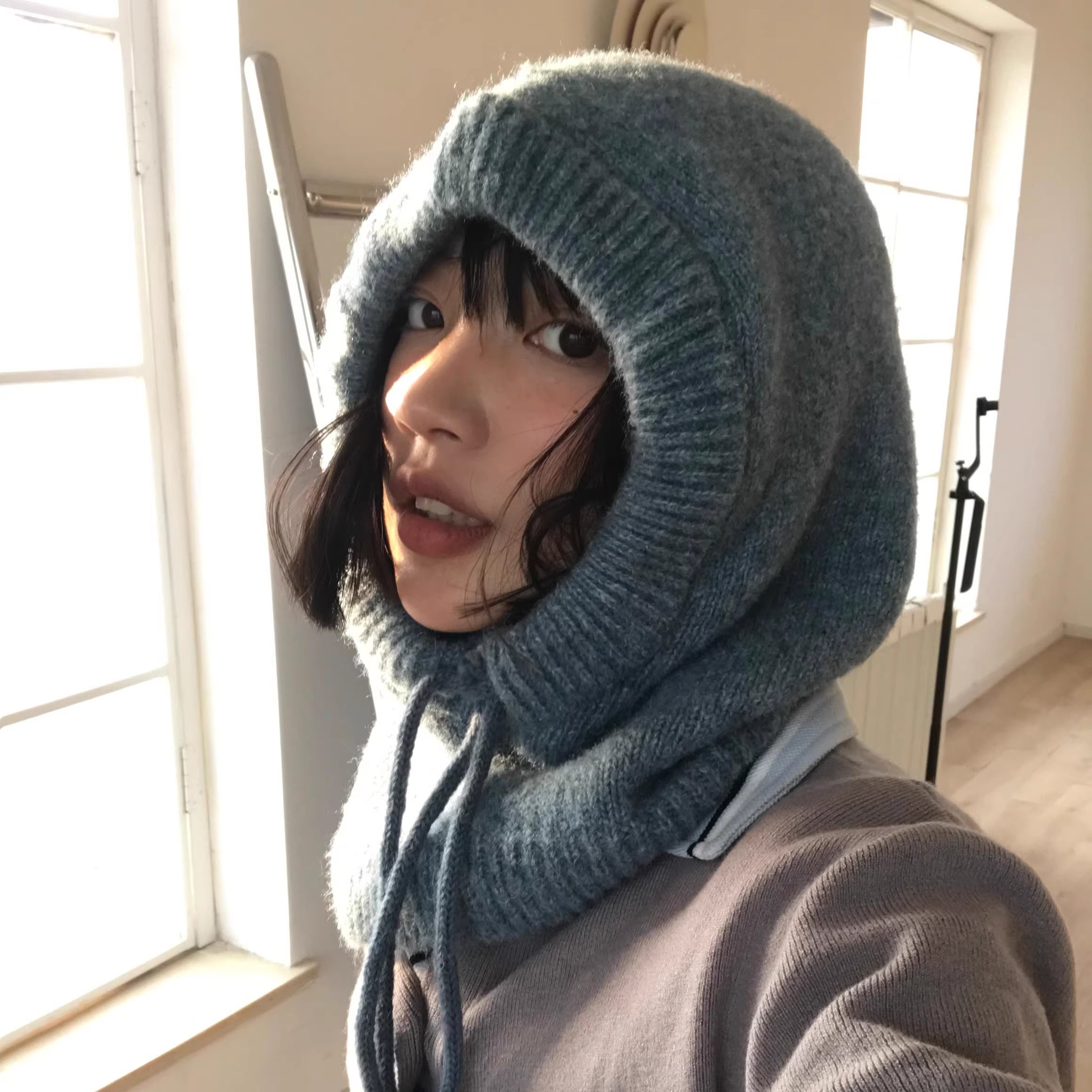 颜小姐 加大加宽显脸小冷帽冷帽网红帽子女秋冬毛线帽堆堆帽大头