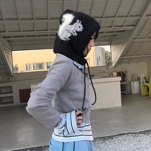 小熊帽子女冬季 围巾连帽一体保暖防寒口罩围脖骑行三件套2025新款