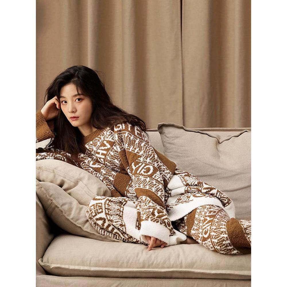 珊瑚绒加厚印花家居服两件套装 睡衣女冬季 轻奢品味 CHAO气质