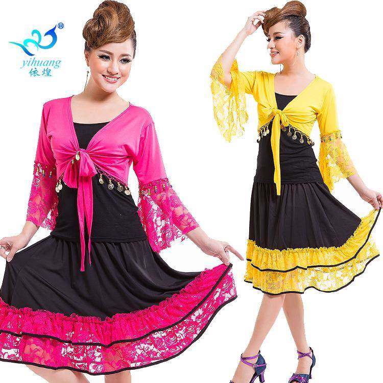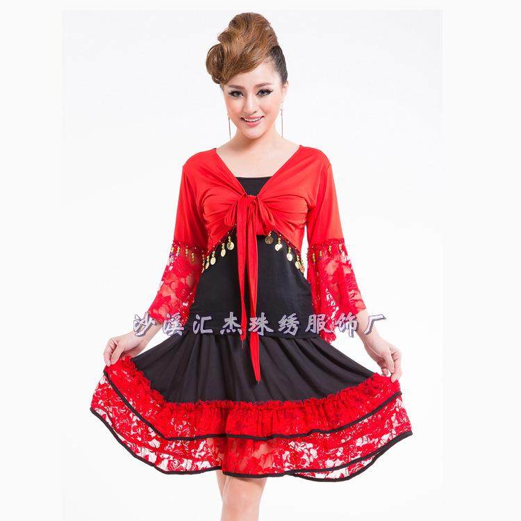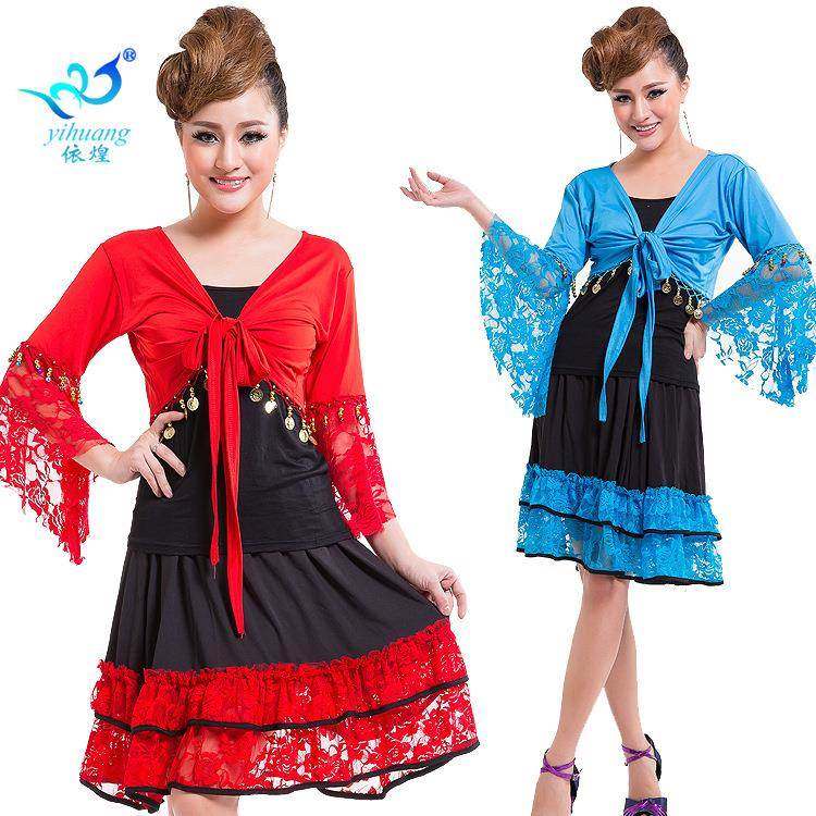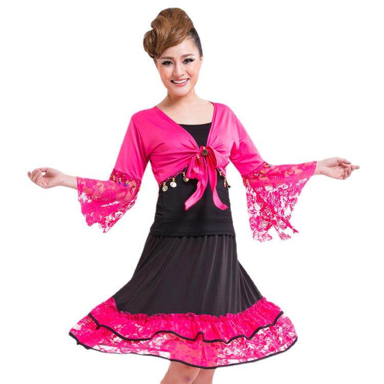 交谊舞舞蹈服表演服喇叭袖 上衣蕾丝套裙集体舞服舞台演出服比赛服