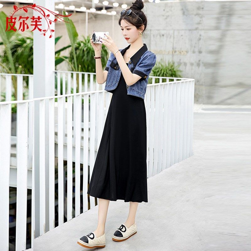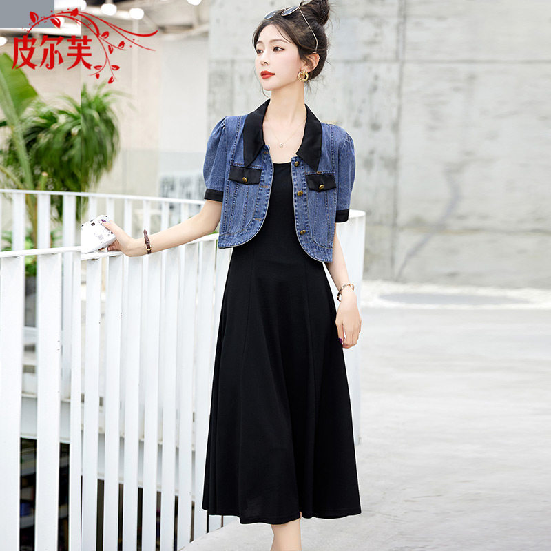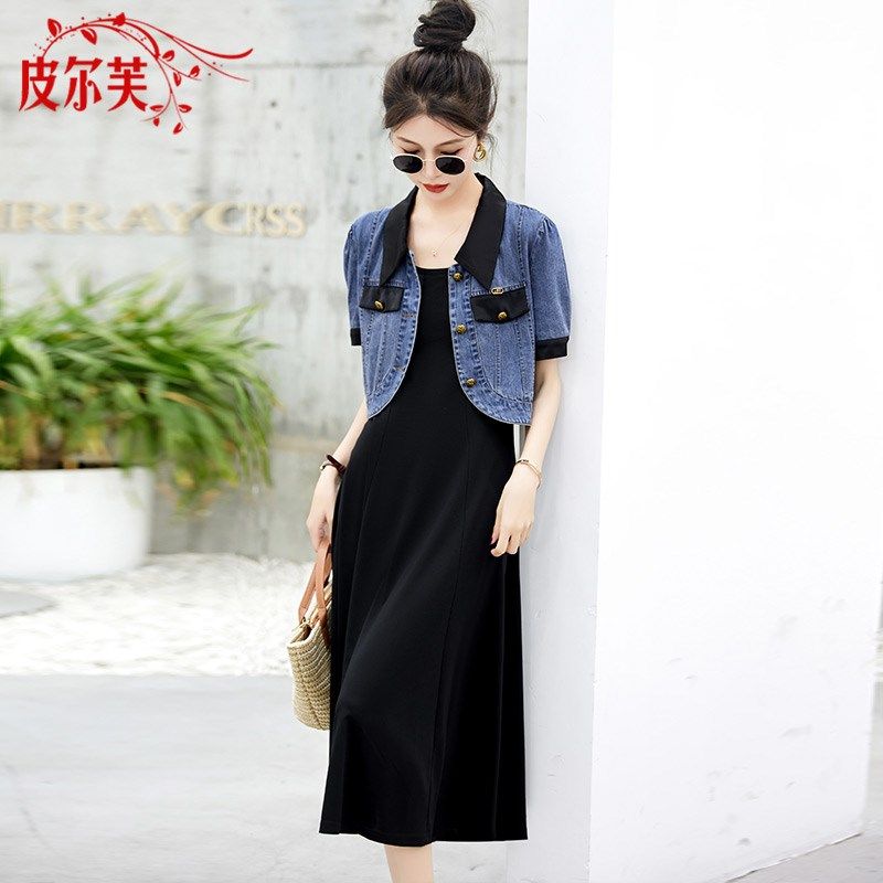 女装 牛仔两件套裙装 洋气显瘦气质外套背心连衣裙时尚 新款 2024夏季