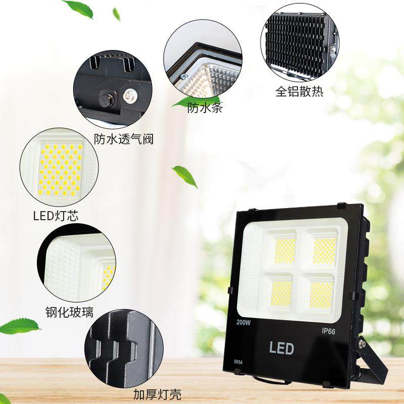 5054LED黑金刚投光灯户外防水大功率工程款 黑色方形广告灯泛光灯