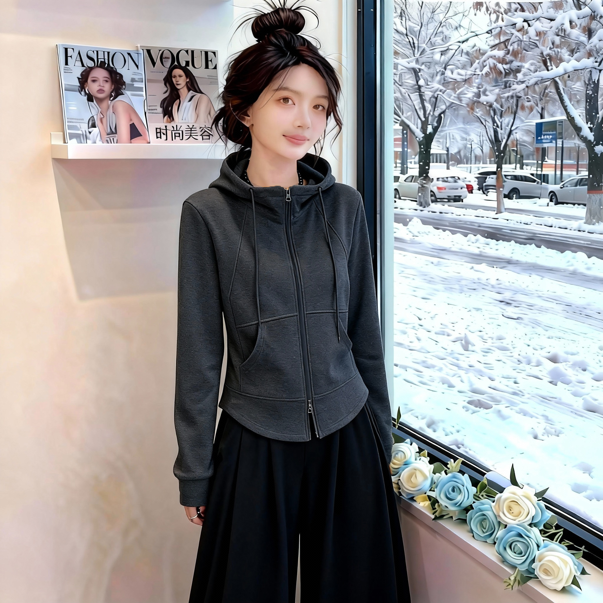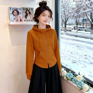 胖MM显瘦时尚 双拉链连帽卫衣外套女2026新款 大码 秋季 洋气上衣 爆款