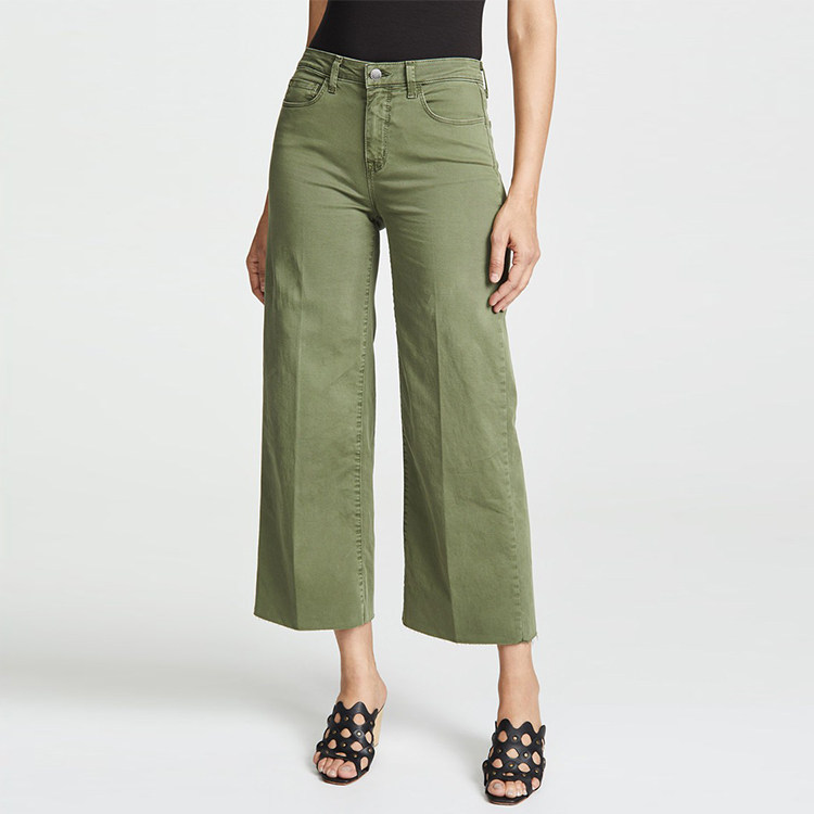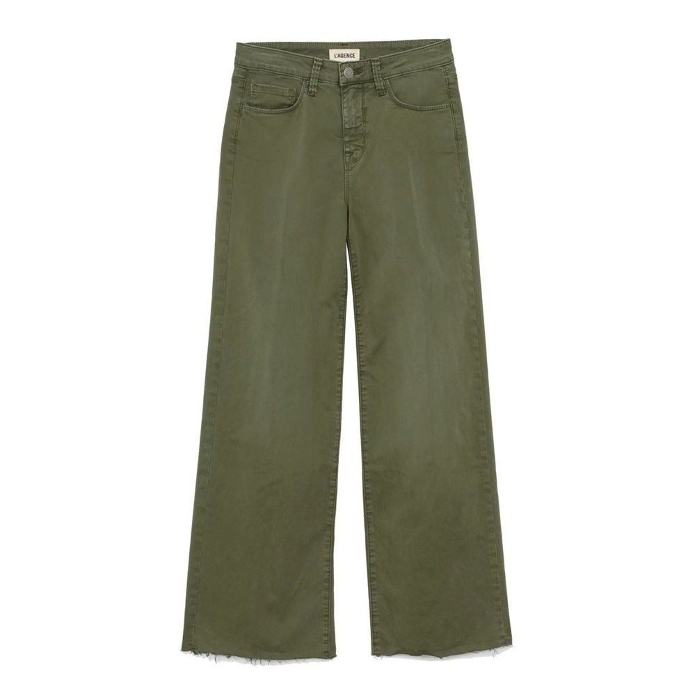 清仓L 女蓝绿色 AGENCE泫雅高腰毛边显瘦长宽松九分阔腿老爹牛仔裤
