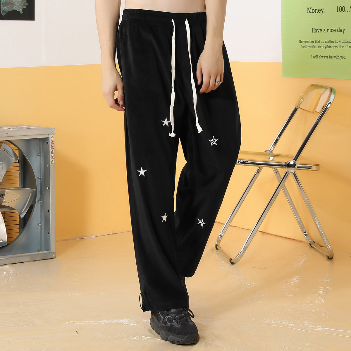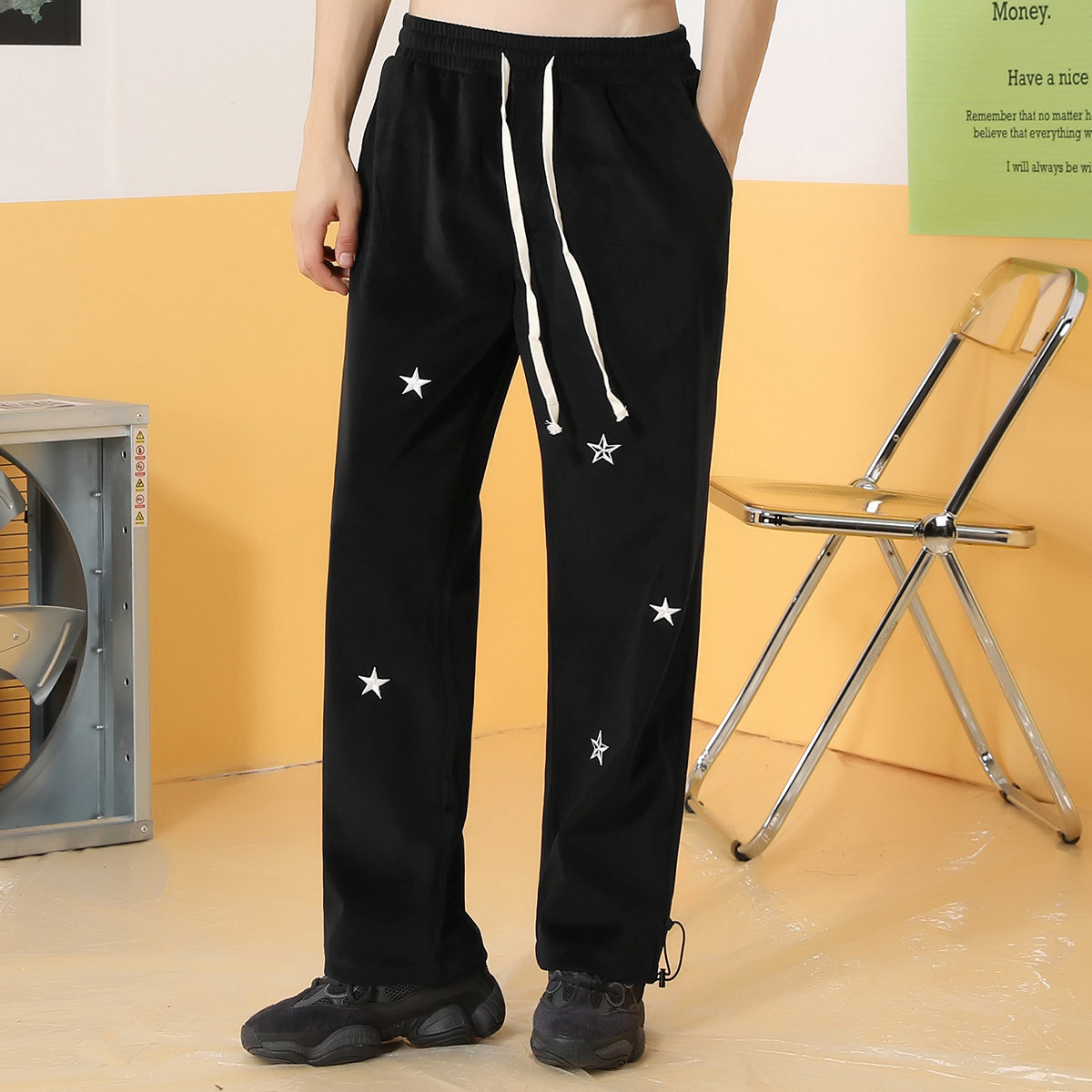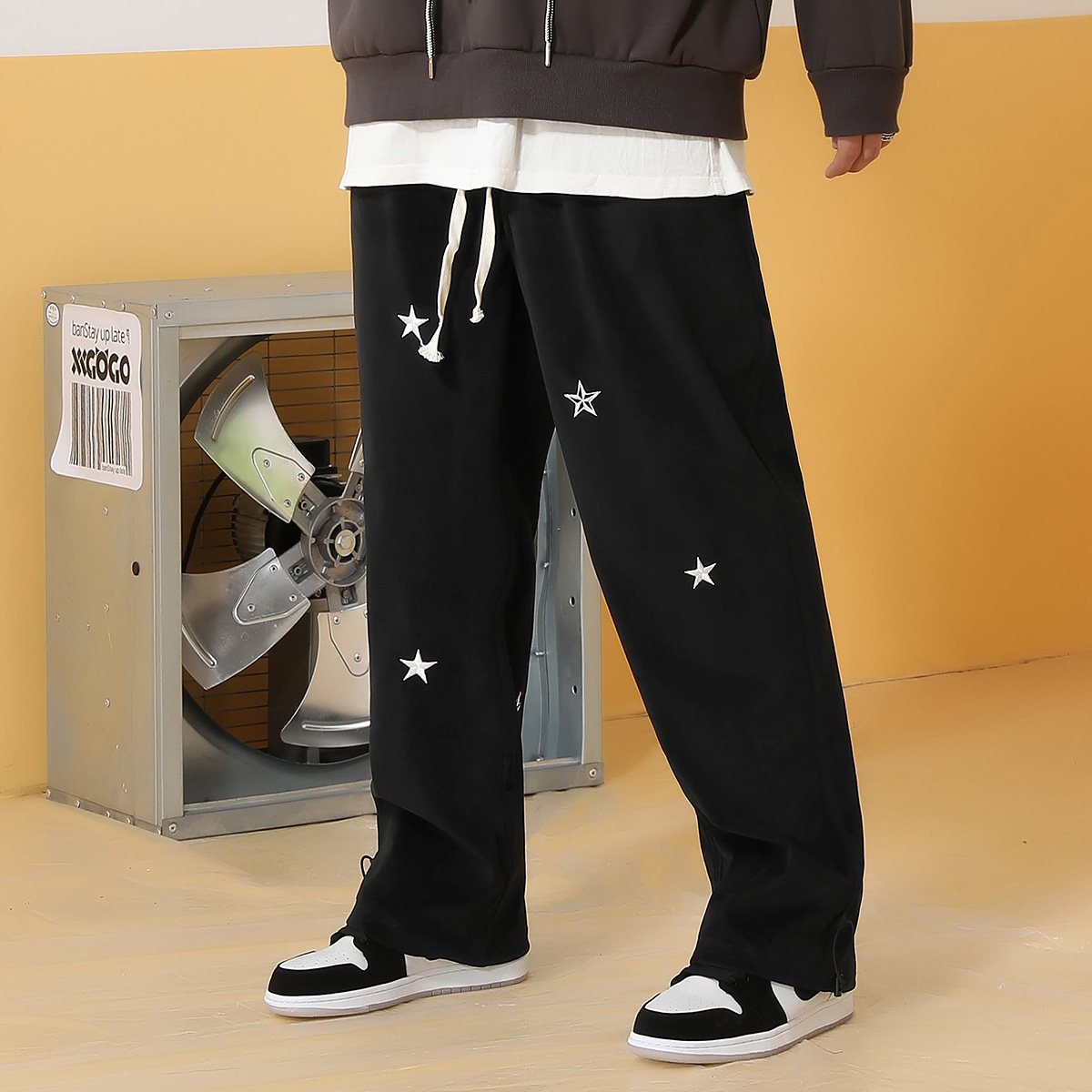 小星星绣花宽松时尚 男女同款 情侣款 休闲裤 黑色 喇叭裤 XXGOGO春秋季