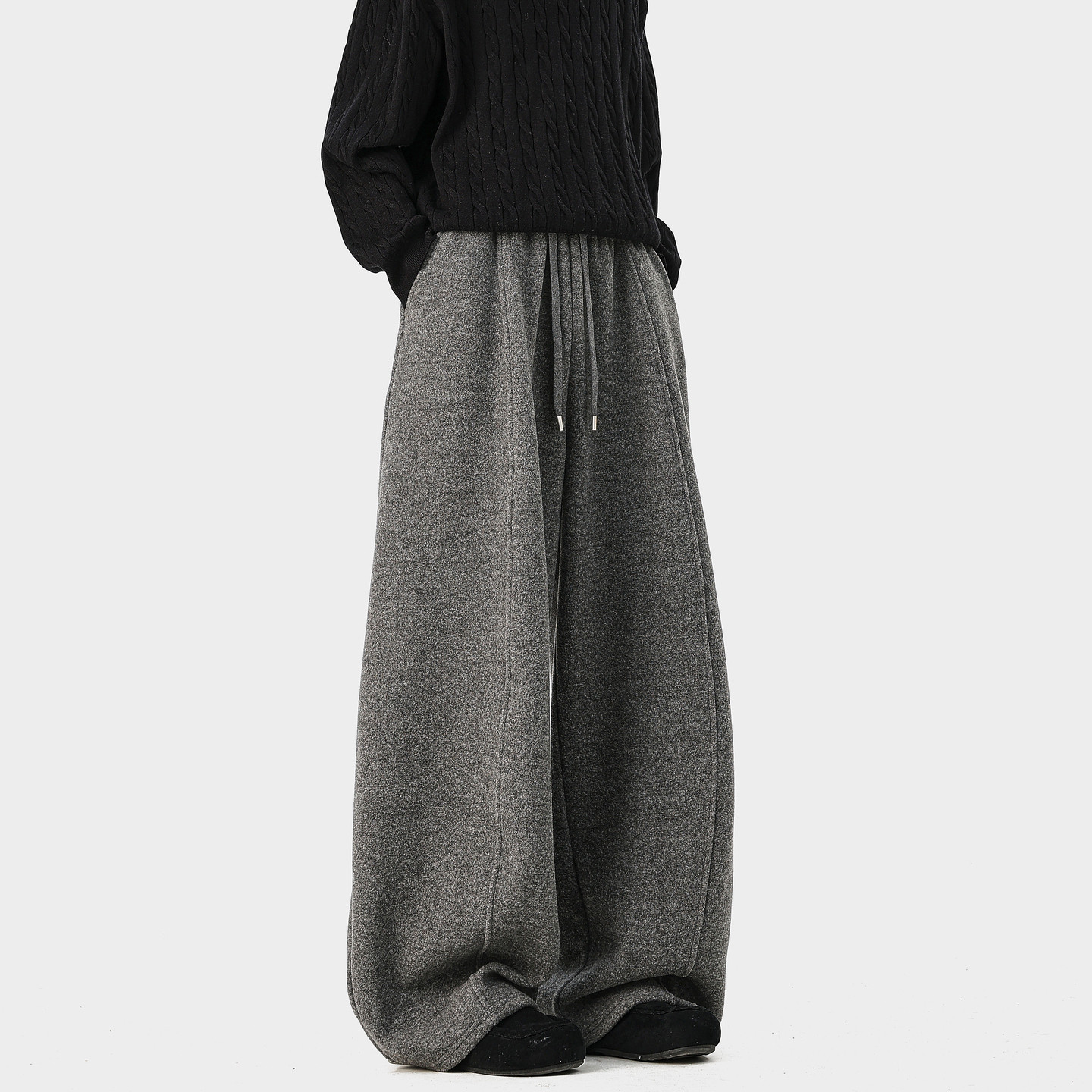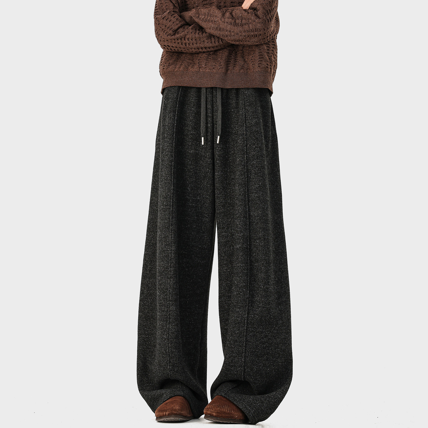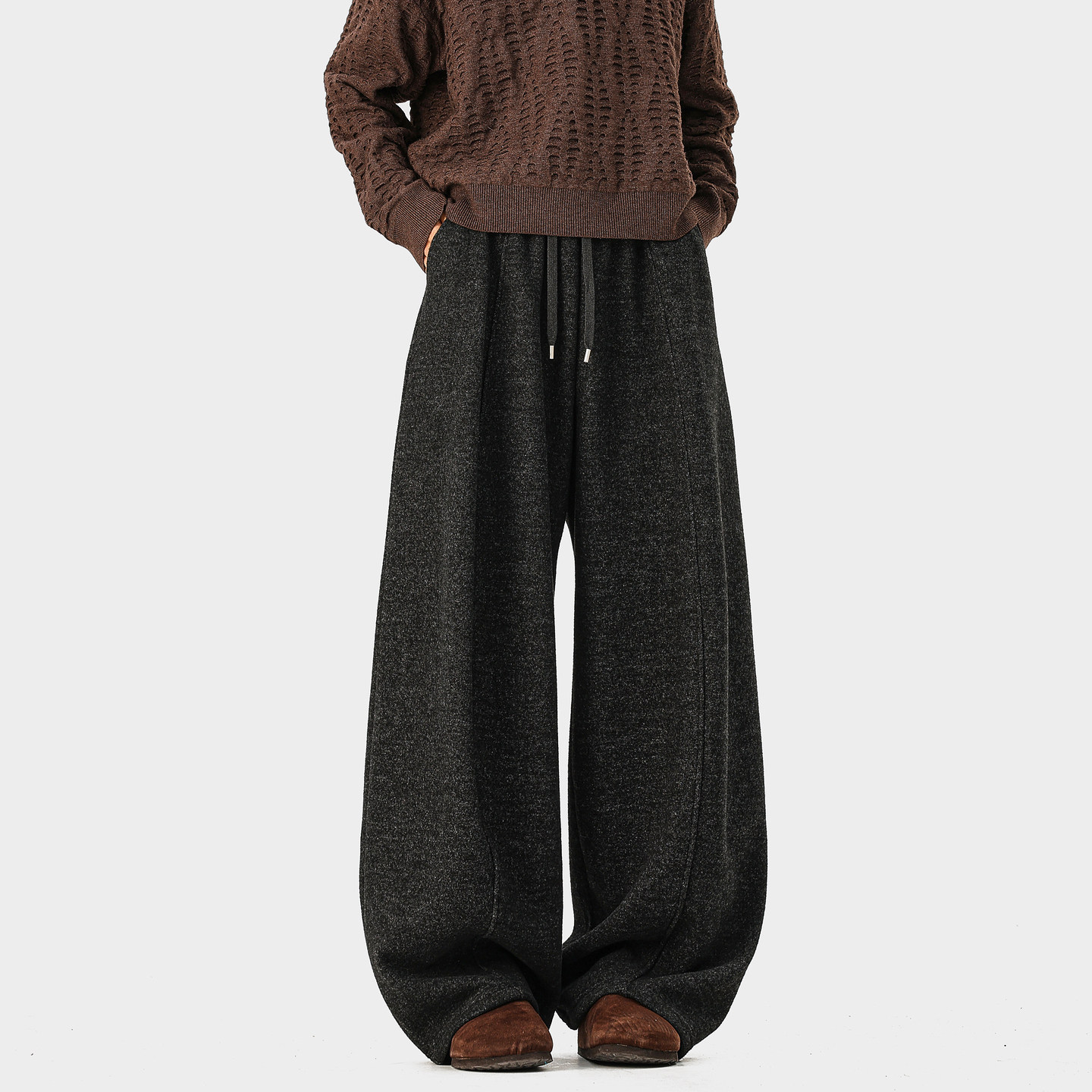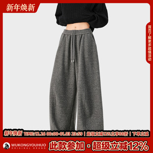 男复古宽松保暖百搭休闲裤 悟空有货潮牌美式 简约加绒垂感弯刀卫裤