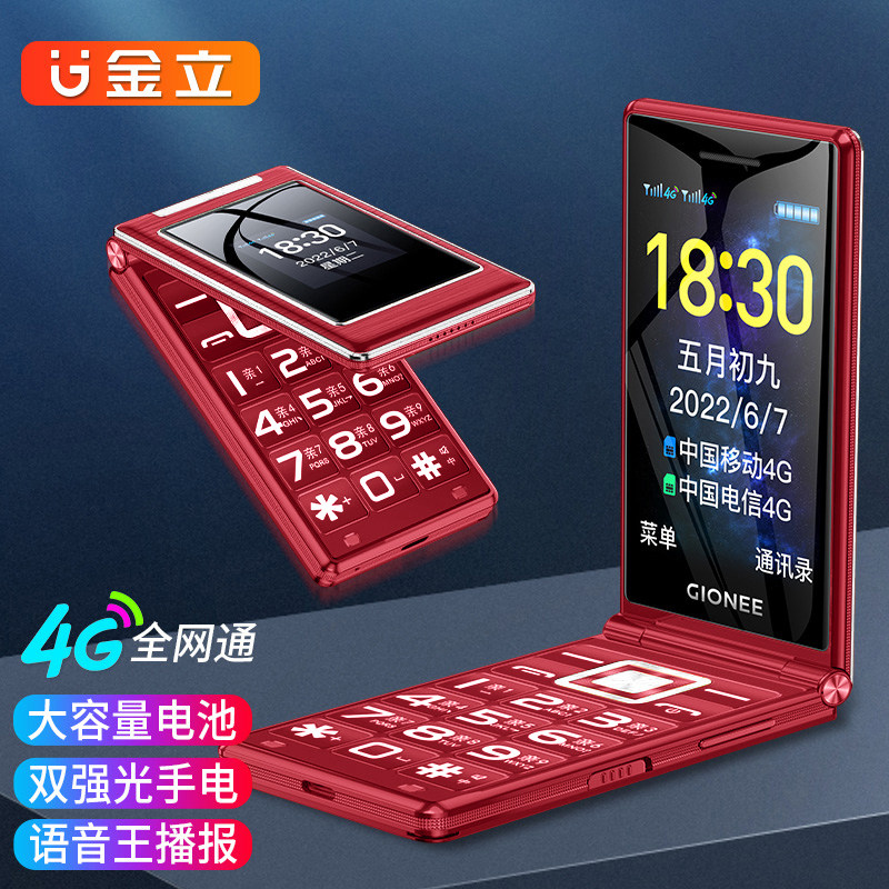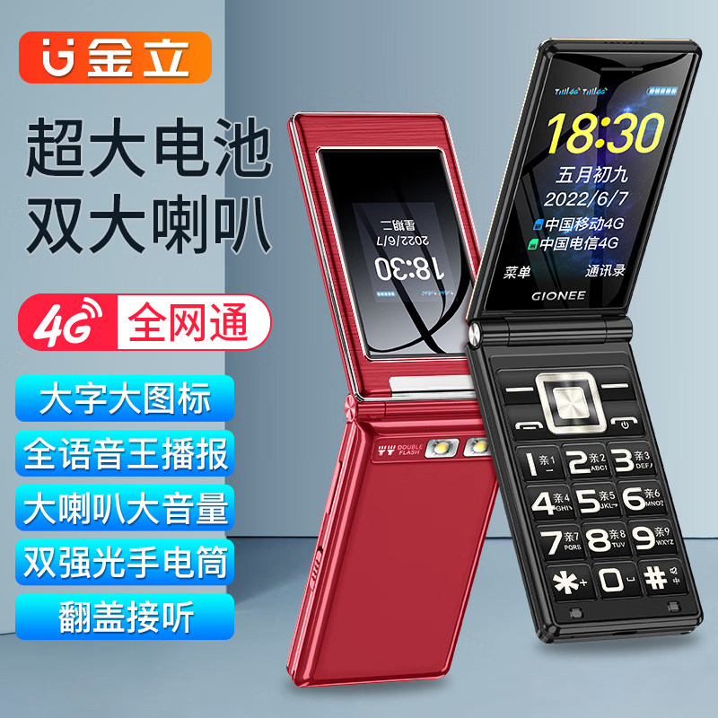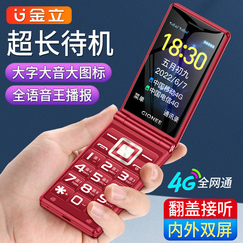 金立老年人手机翻盖按键大图标大字体全网通超长待机折叠学生老人手机语音播报强光手电