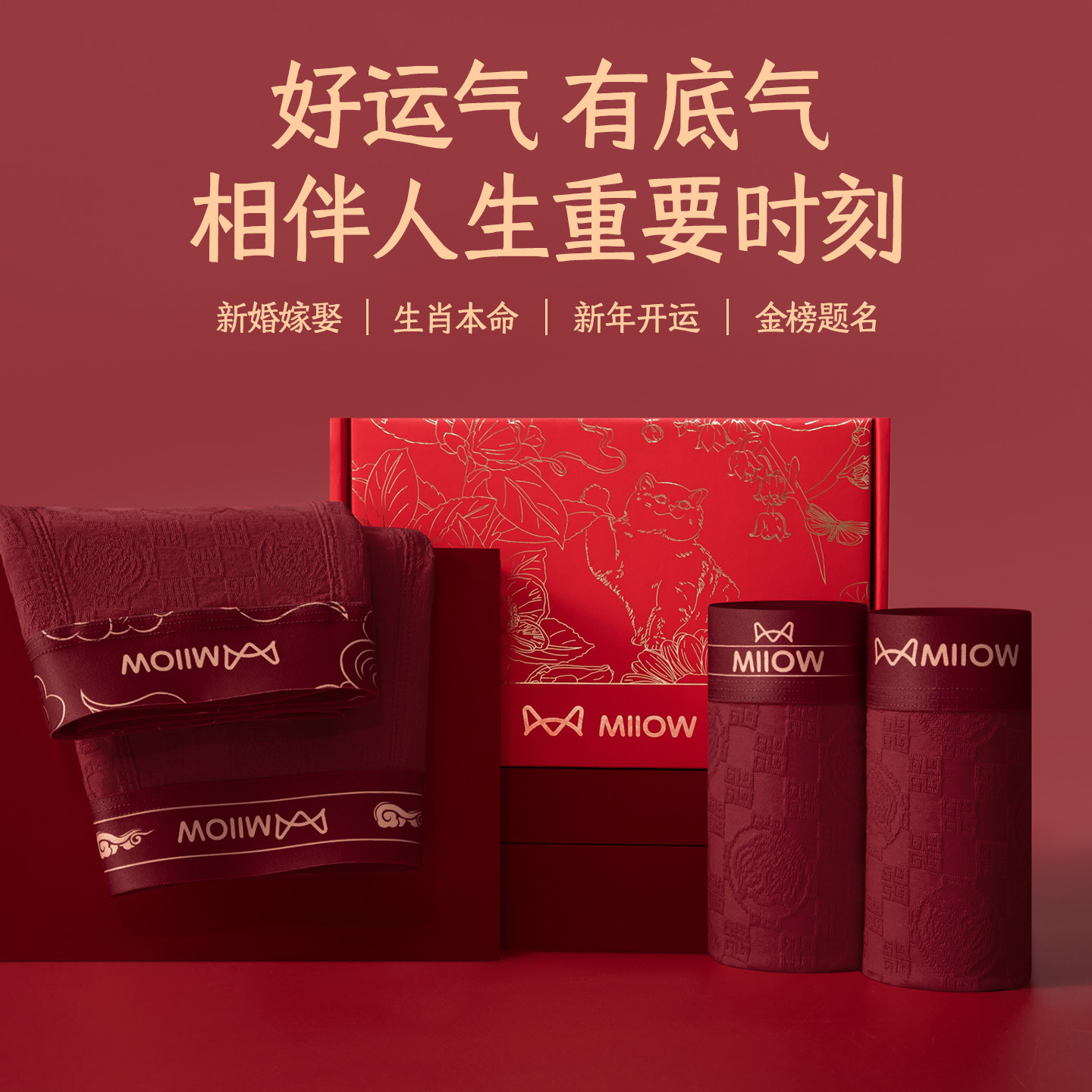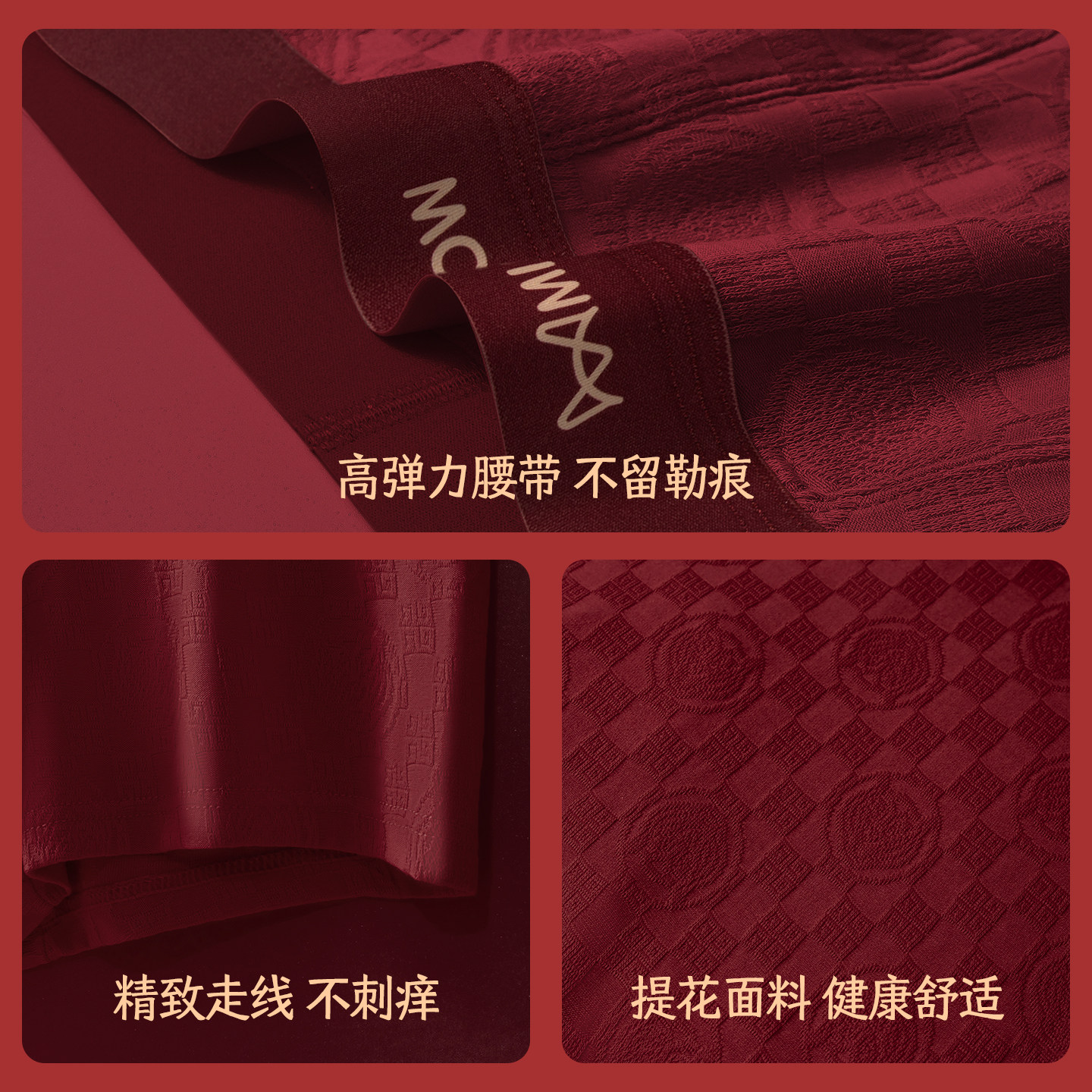 本命年2026马年结婚大红色平角短裤 猫人男士 高档盒装 纯棉男款 内裤