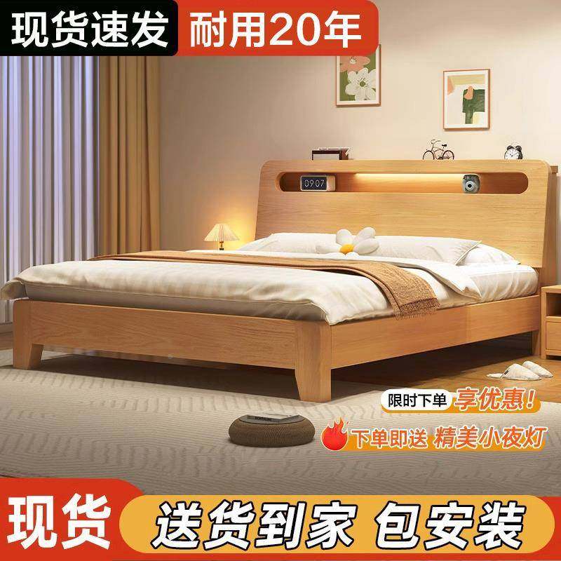 全实木床1米8双人床家用卧室大床原木橡木简约出租房1.2米单人床