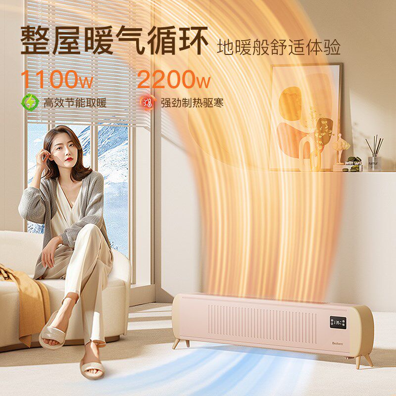 百斯腾踢脚线取暖器石墨烯家用节能省电暖气室内大面积速热暖风机