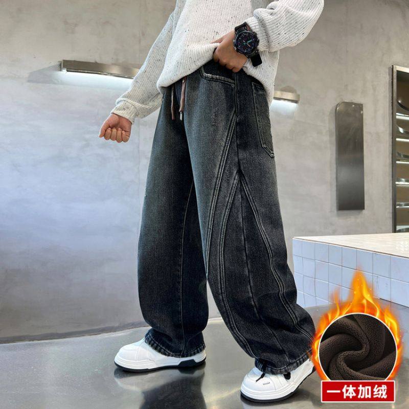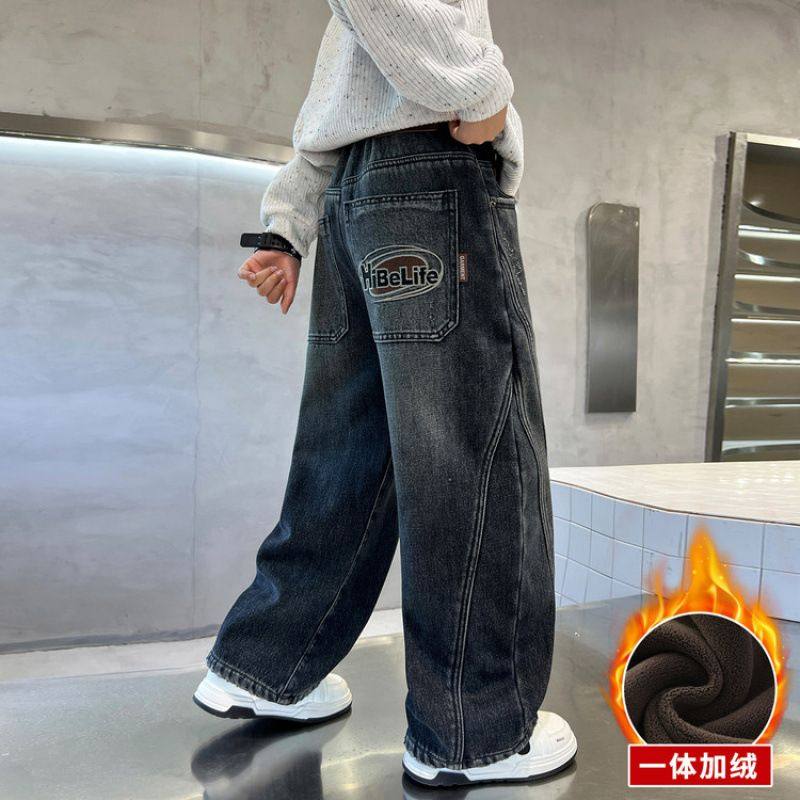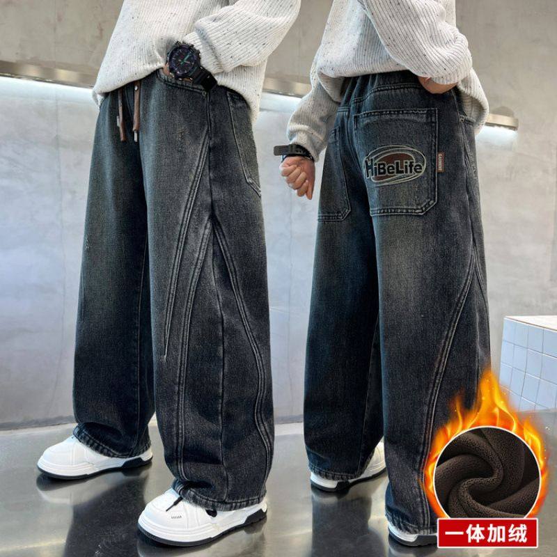 子秋冬款 大童加厚长裤 2025新款 一体绒牛仔裤 潮 儿童冬季 男童加绒裤