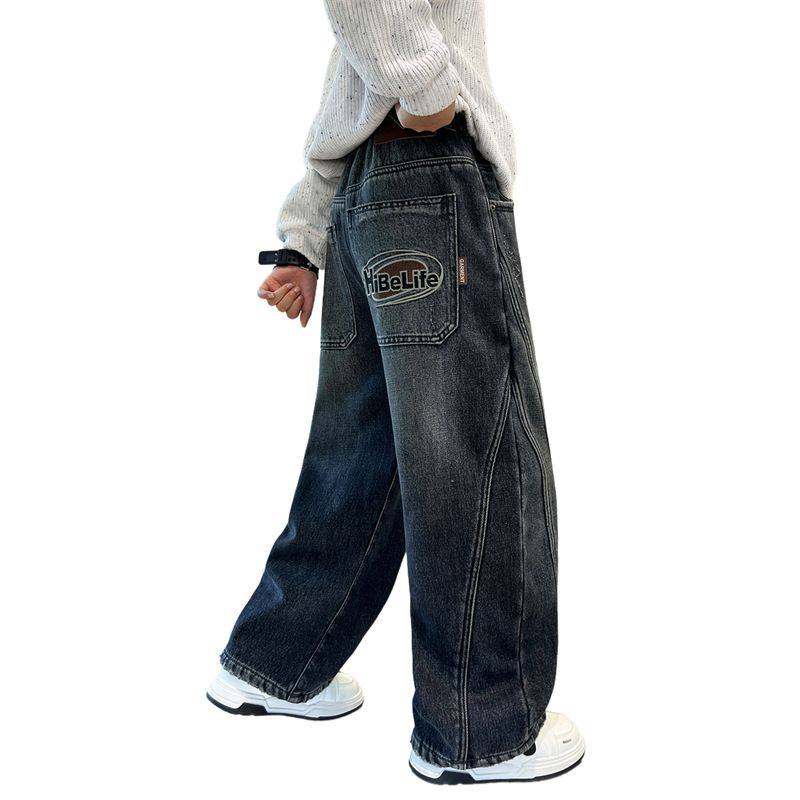 秋冬2025新款 子春秋款 儿童弯刀裤 大童裤 男孩潮 加绒冬装 男童牛仔裤