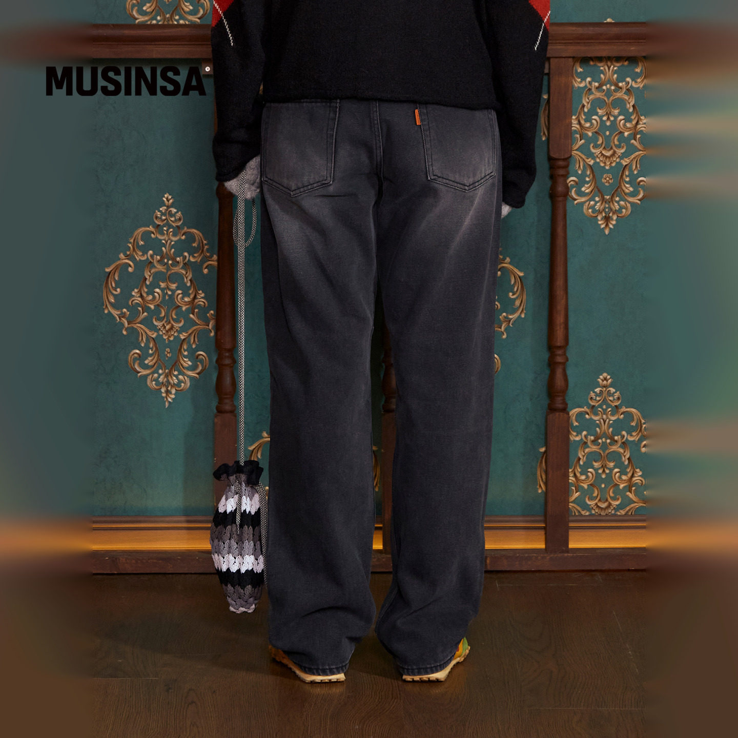 潮 阔腿直筒裤 猫猫家加长牛仔裤 女加绒加厚高腰复古水泥黄宽松窄版
