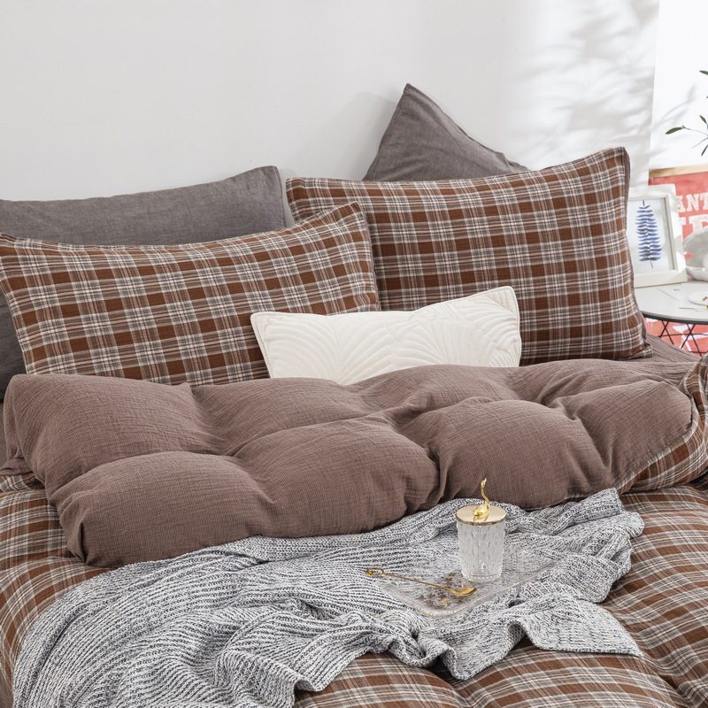 纯棉加厚双层纱四件套全棉秋冬 美拉德色糯亲肤A类纯棉纱布四件套