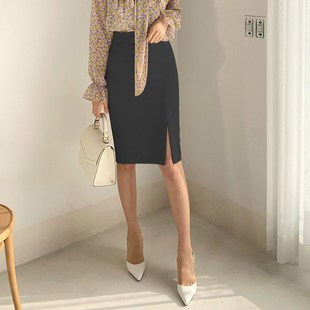 职业半身裙女包臀裙中长款 开叉高腰一步裙中裙百搭工作裙夏 时尚