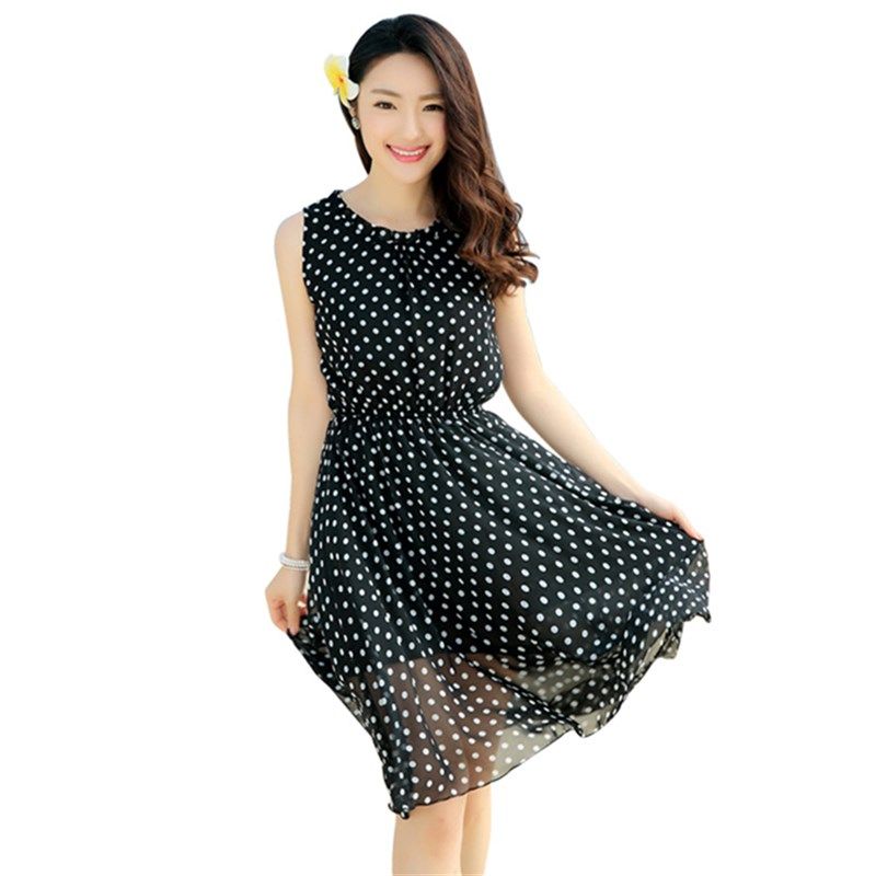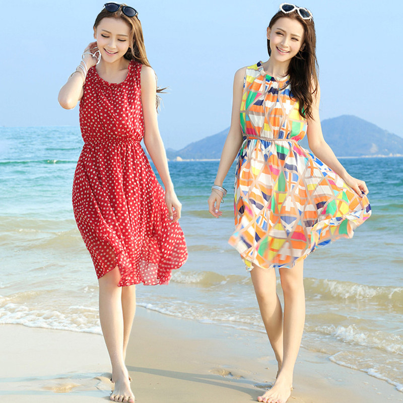 波西米亚背心裙红色波点无袖 飘逸海边度假沙滩裙 雪纺连衣裙夏短款