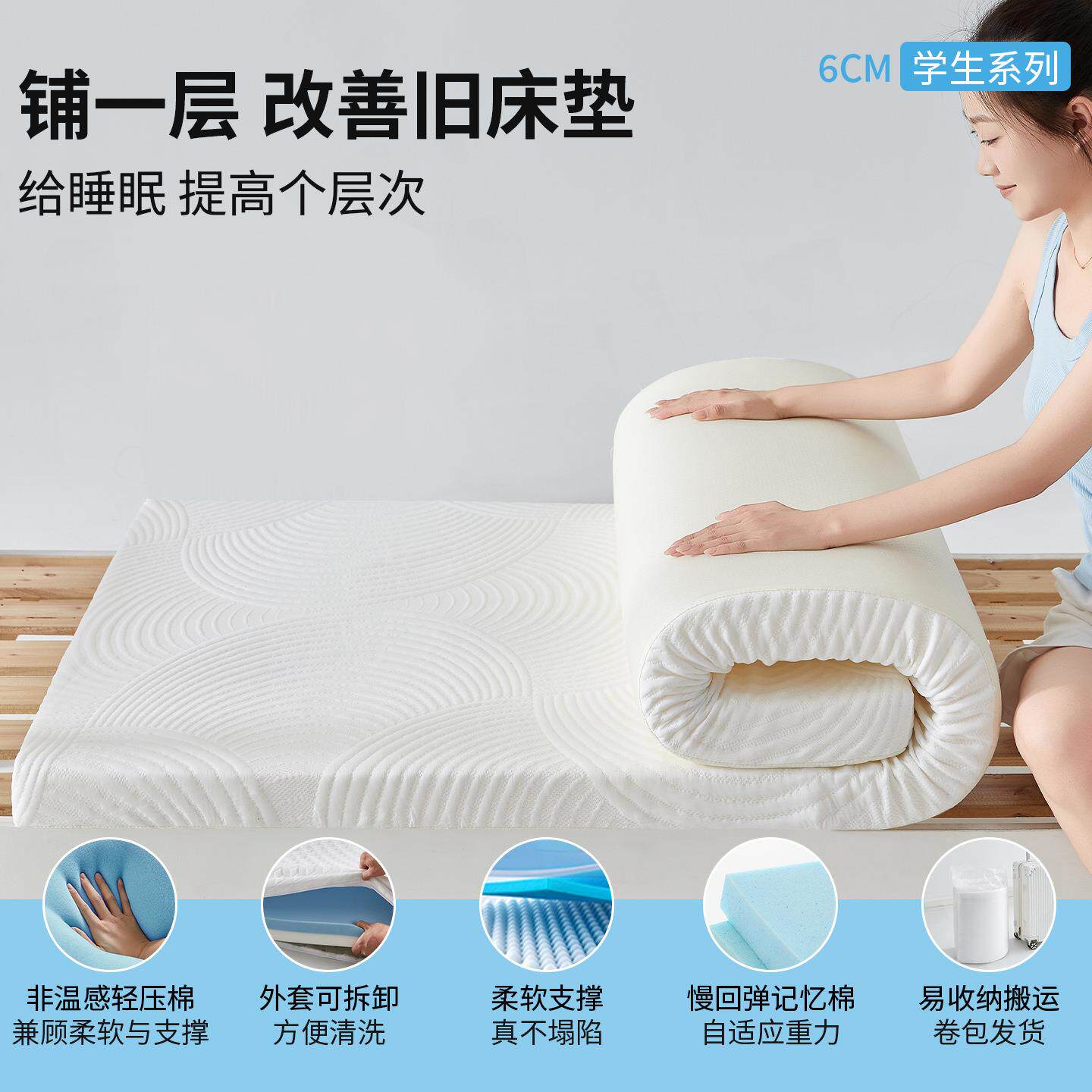 记忆棉床垫宿舍学生单人床垫子可拆洗90x190cm学校住校大学生