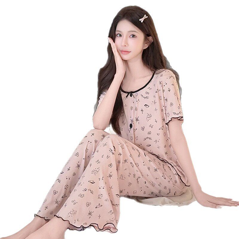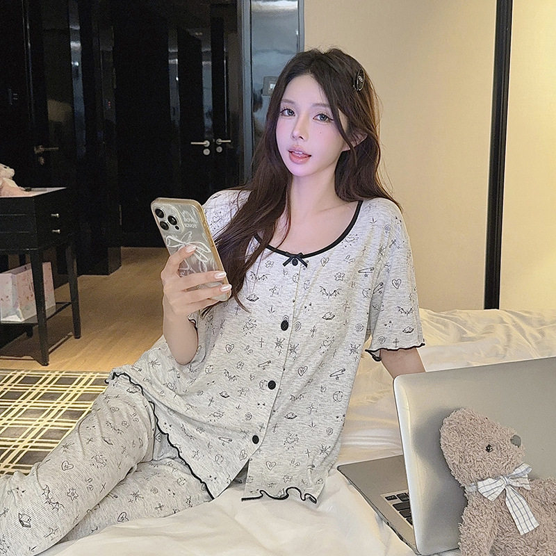高级感莫代尔棉甜美印花家居服外穿套装 睡衣女夏季 短袖 喔密哒薄款