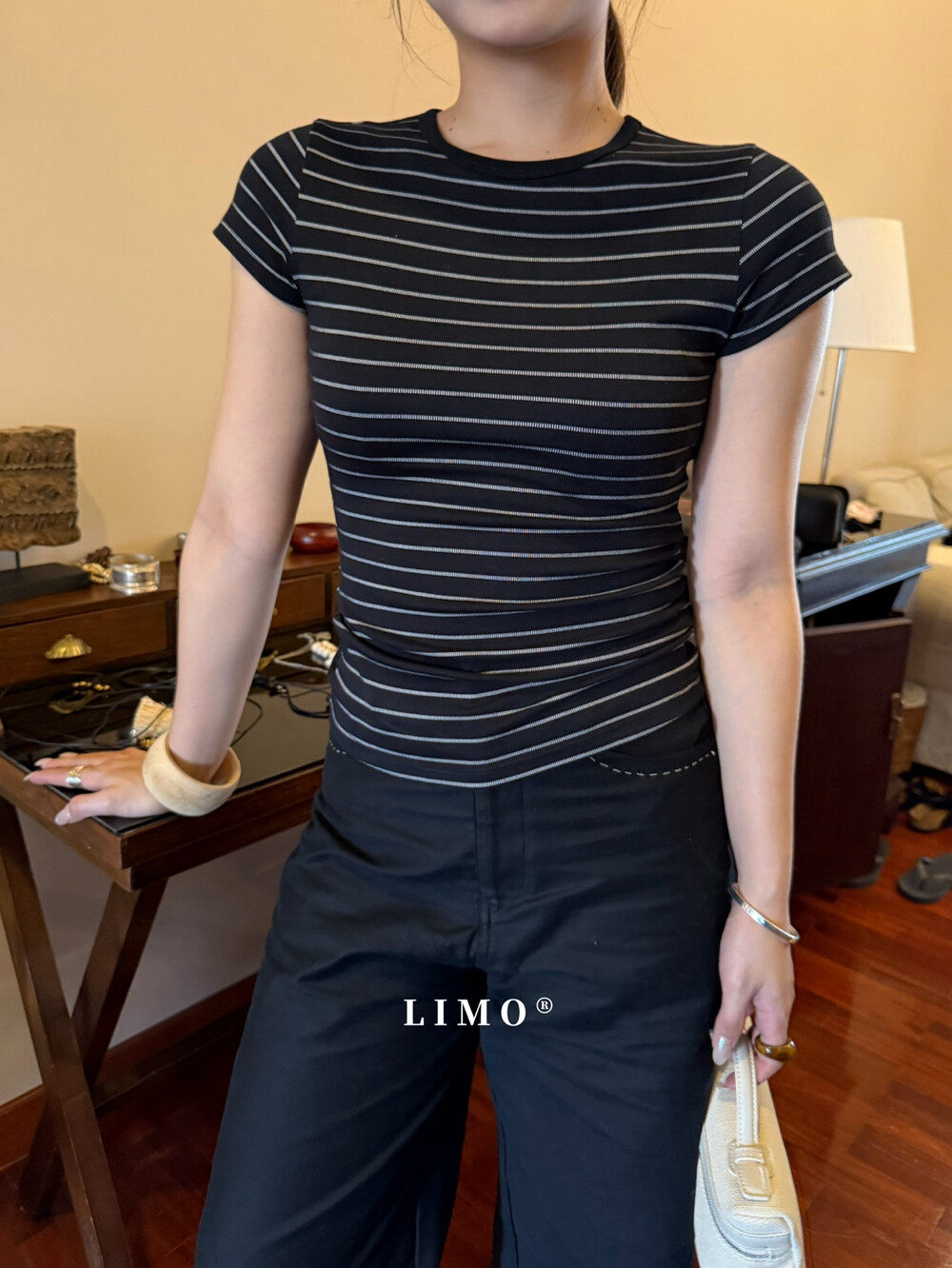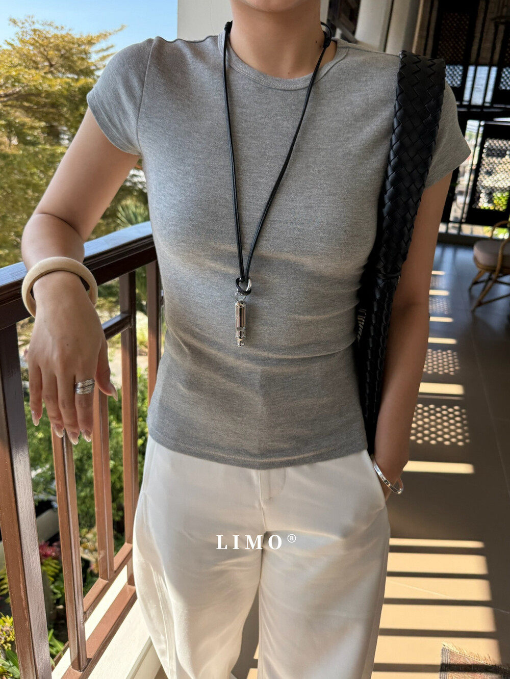 洋气高级ins圆领收腰显瘦纯色短袖 LIMO正版 韩版 新款 T恤女 2026春季