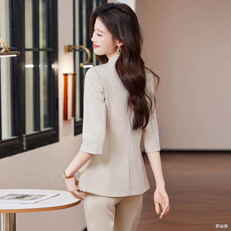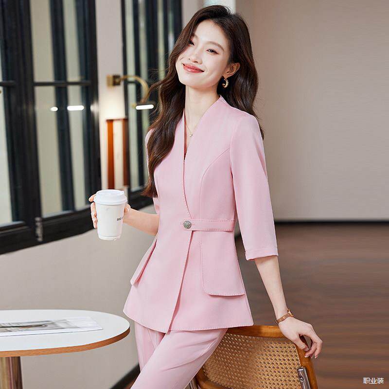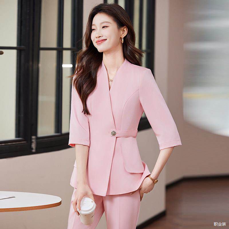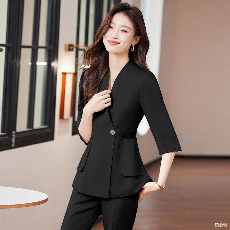 女夏季 套装 薄款 OL职业装 两件套外套 设计风七分袖 收腰显瘦长裤 西装