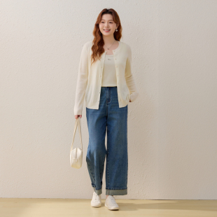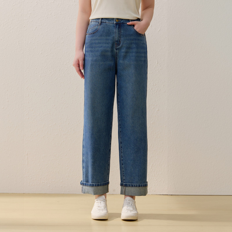 胖mm2026夏装 女装 零压通勤九分直筒纤莉秀大码 新款 蛋卷牛仔裤