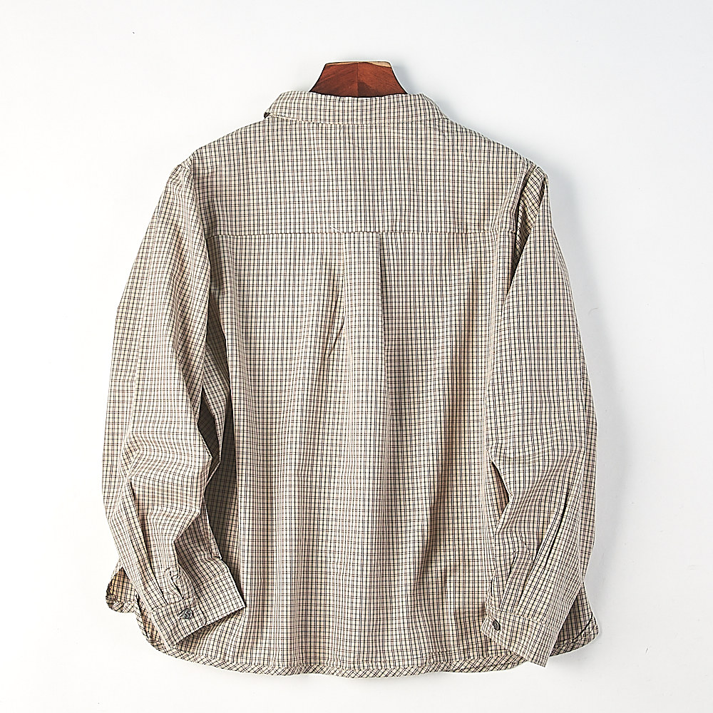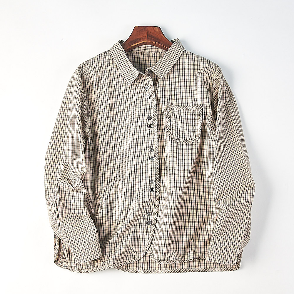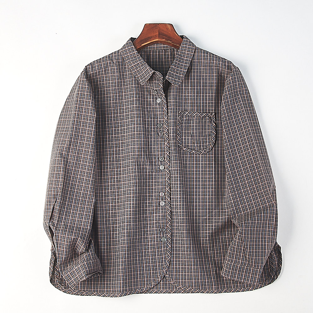 复古文艺通勤上衣 女H86210春夏新款 日系休闲格子宽松翻领长袖 衬衫
