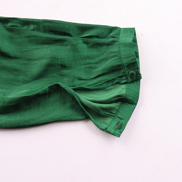 女百搭时尚 衬衫 感丝滑上衣C2 极简风绿色V领长袖 法式