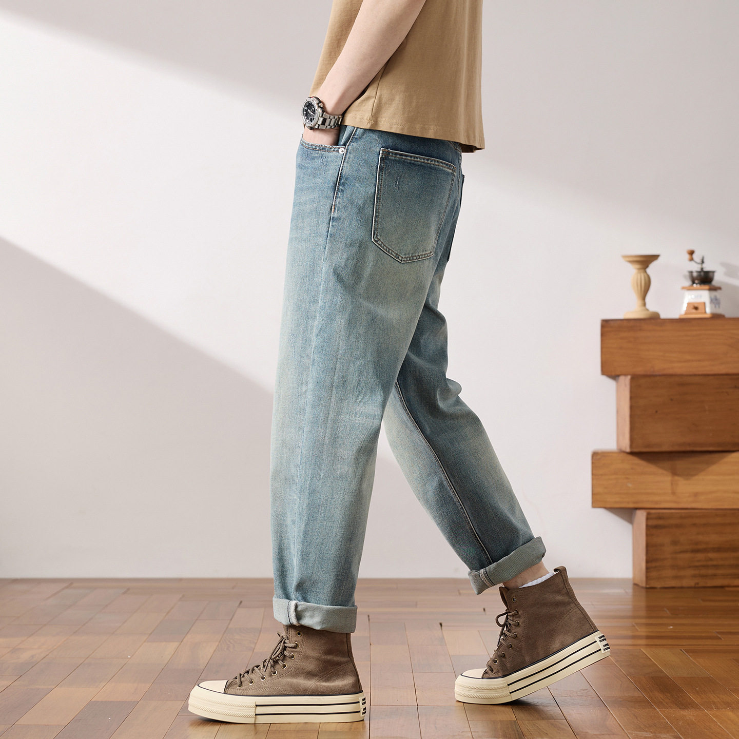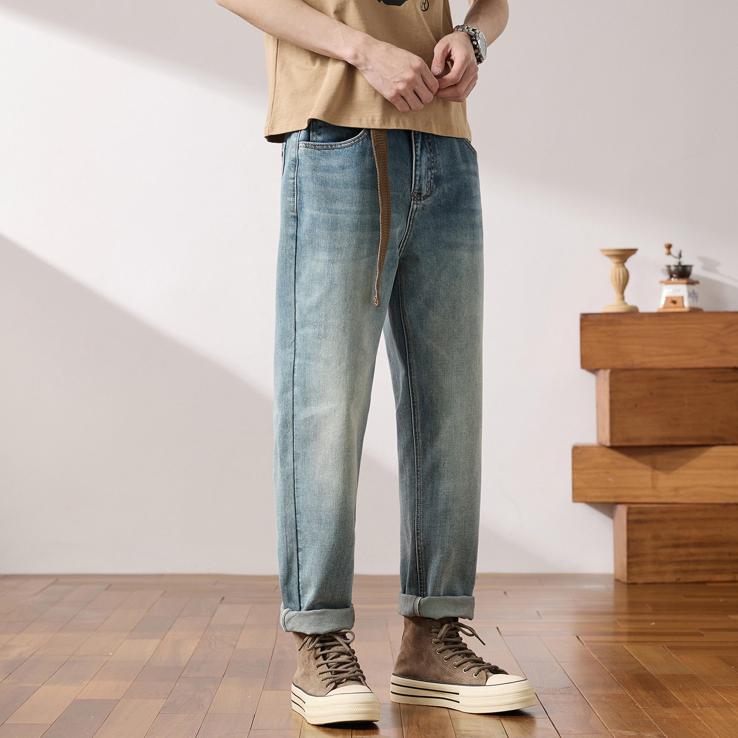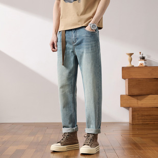 舒时尚 美式 适宽松小锥裤 前后口袋带刺绣男士 春季 高端牛仔裤 新款
