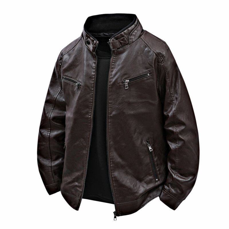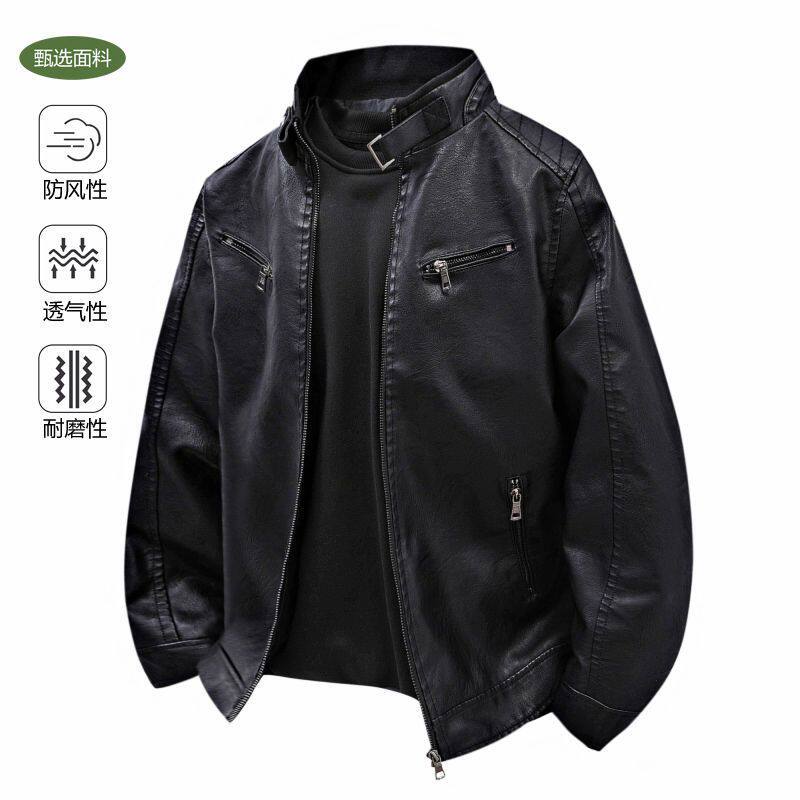 立领拉链皮夹克外套青年 修身 机车秋冬新款 休闲百搭皮衣男潮流时尚