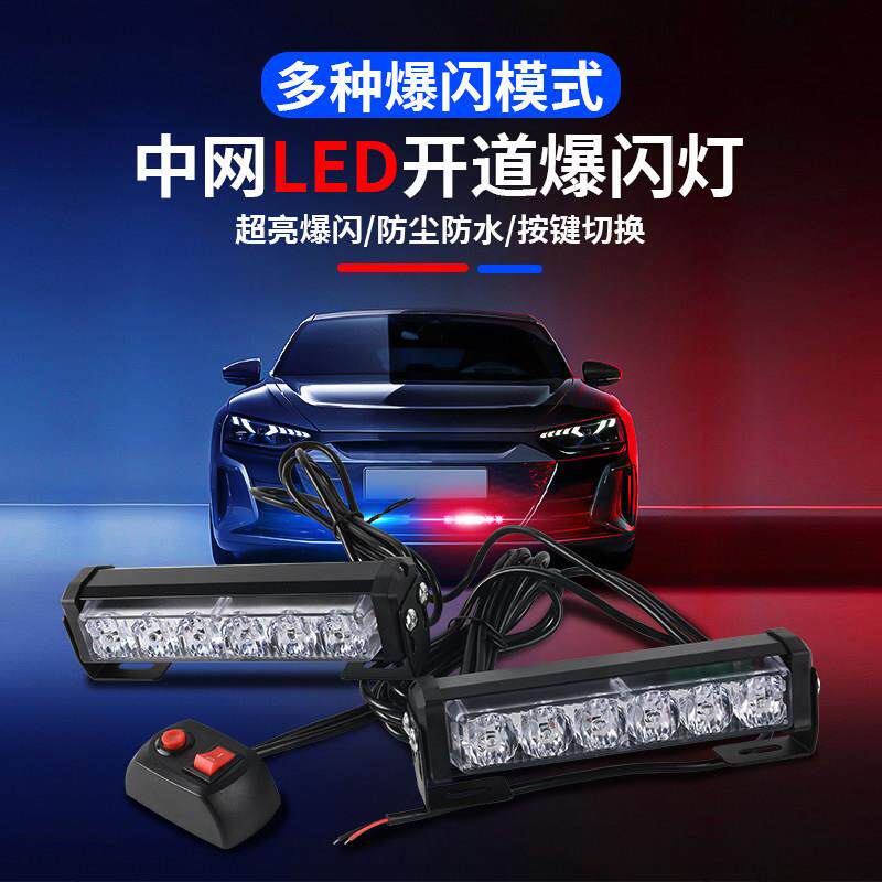 汽车中网爆闪灯无线遥控12v 24v超亮救援警示灯led日行灯开道灯