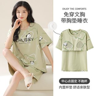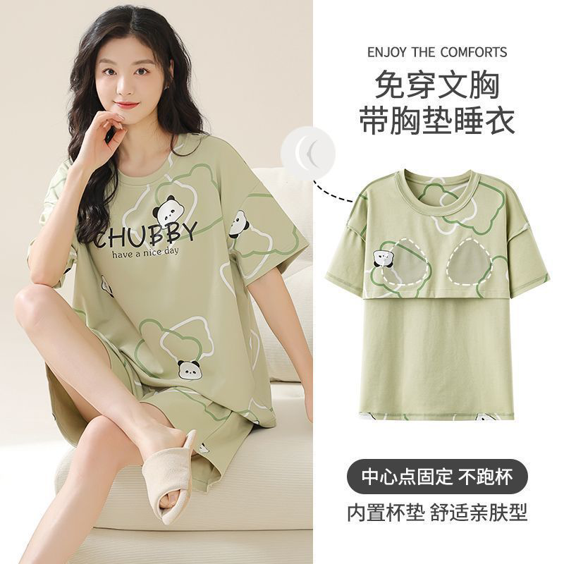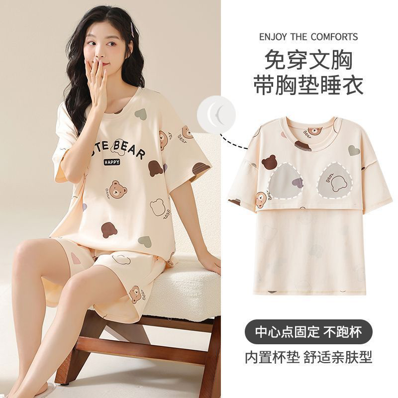 短裤 短袖 带胸垫薄款 卡通小熊韩版 女 睡衣女夏季 学生家居服套装 新款