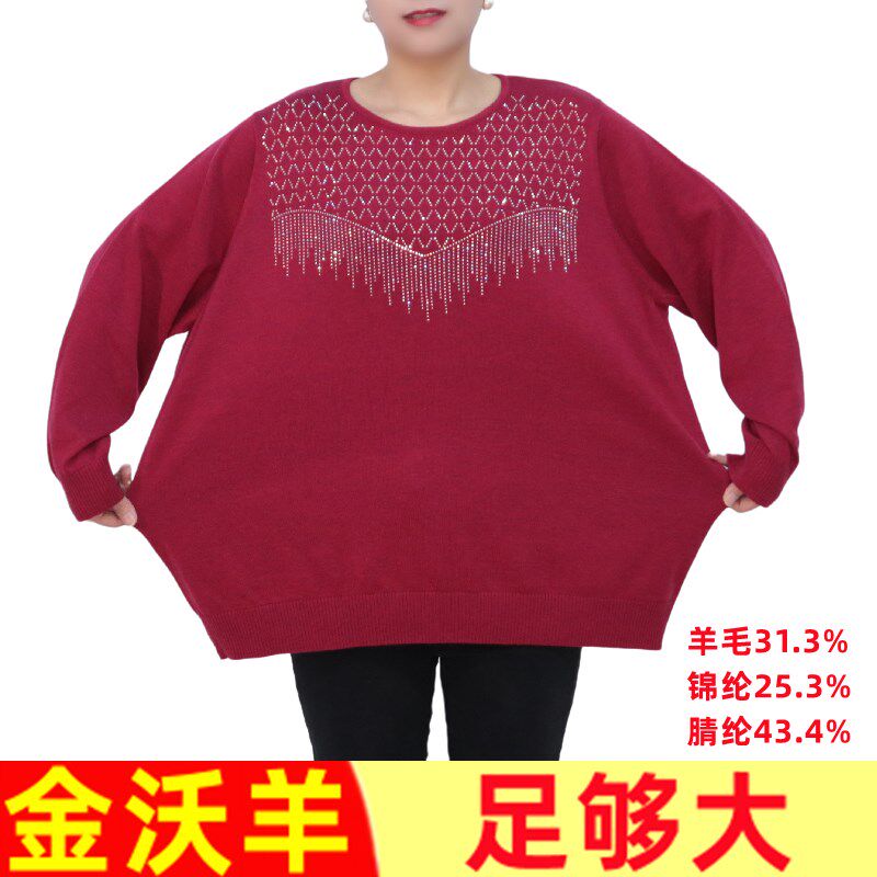 秋冬装 200斤加肥加大码 针织羊毛衫 中老年毛衣胖妈妈装 宽松083 女装