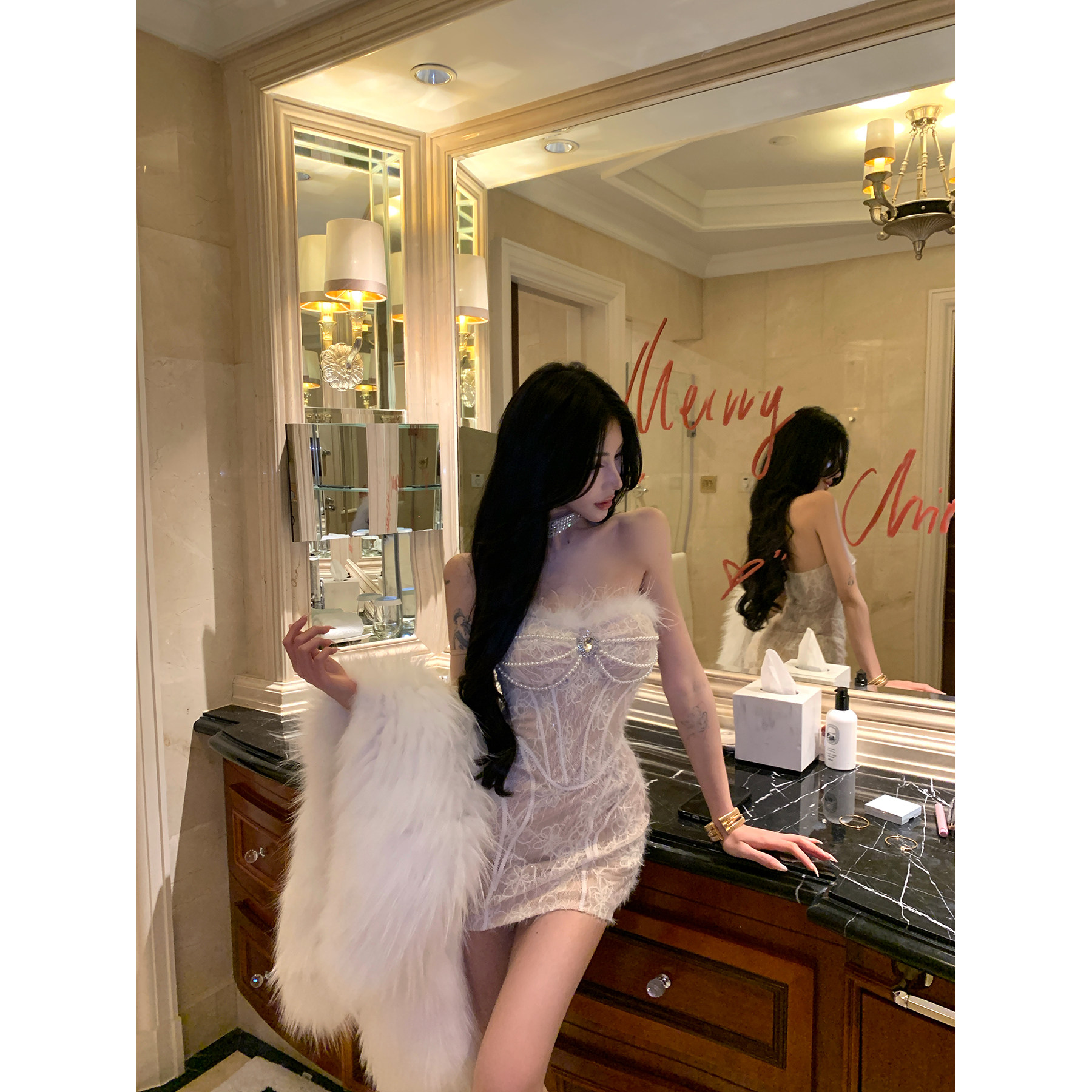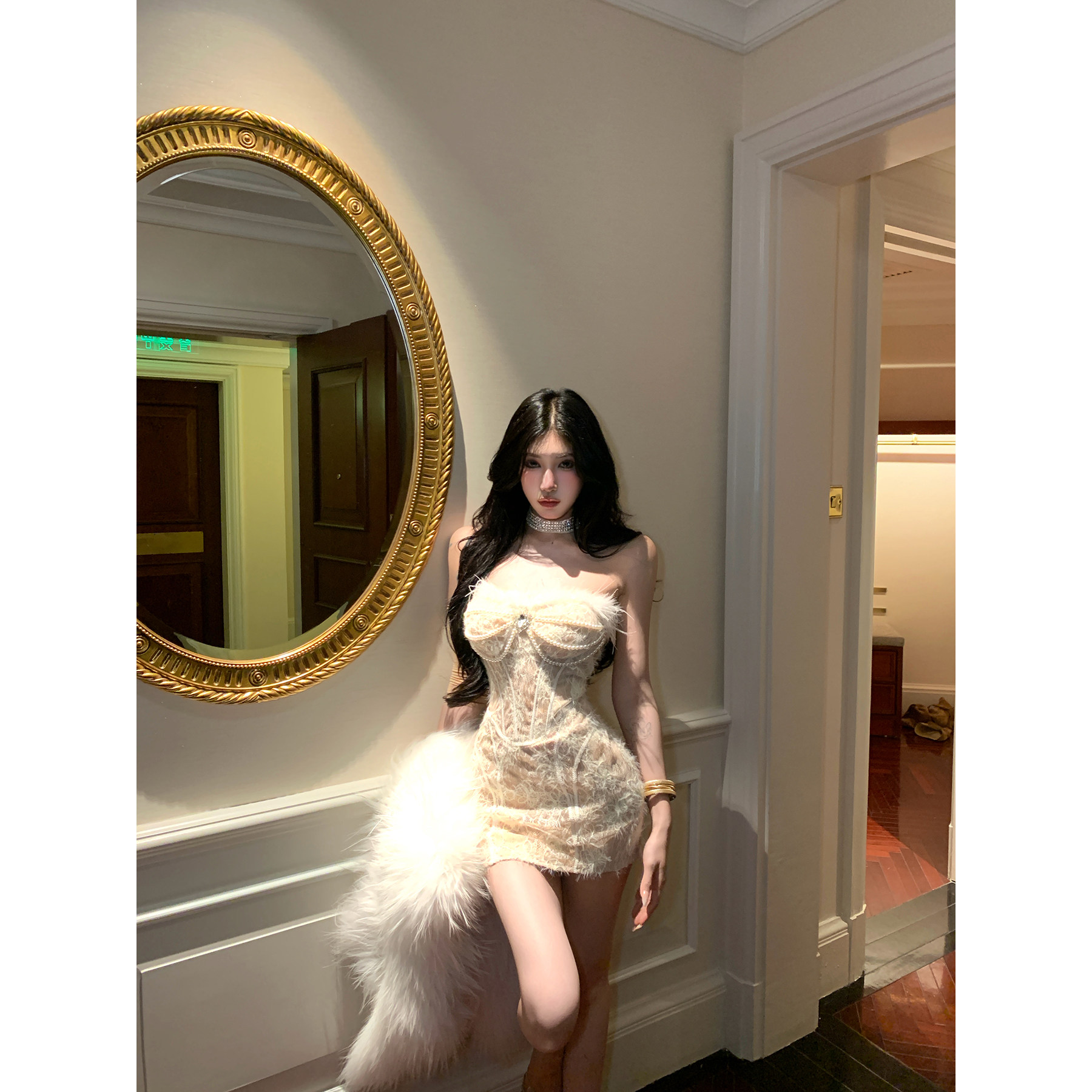 蕾丝拼接抹胸短裙生日裙子 新款 牛了牛了 包臀连衣裙女2025冬季