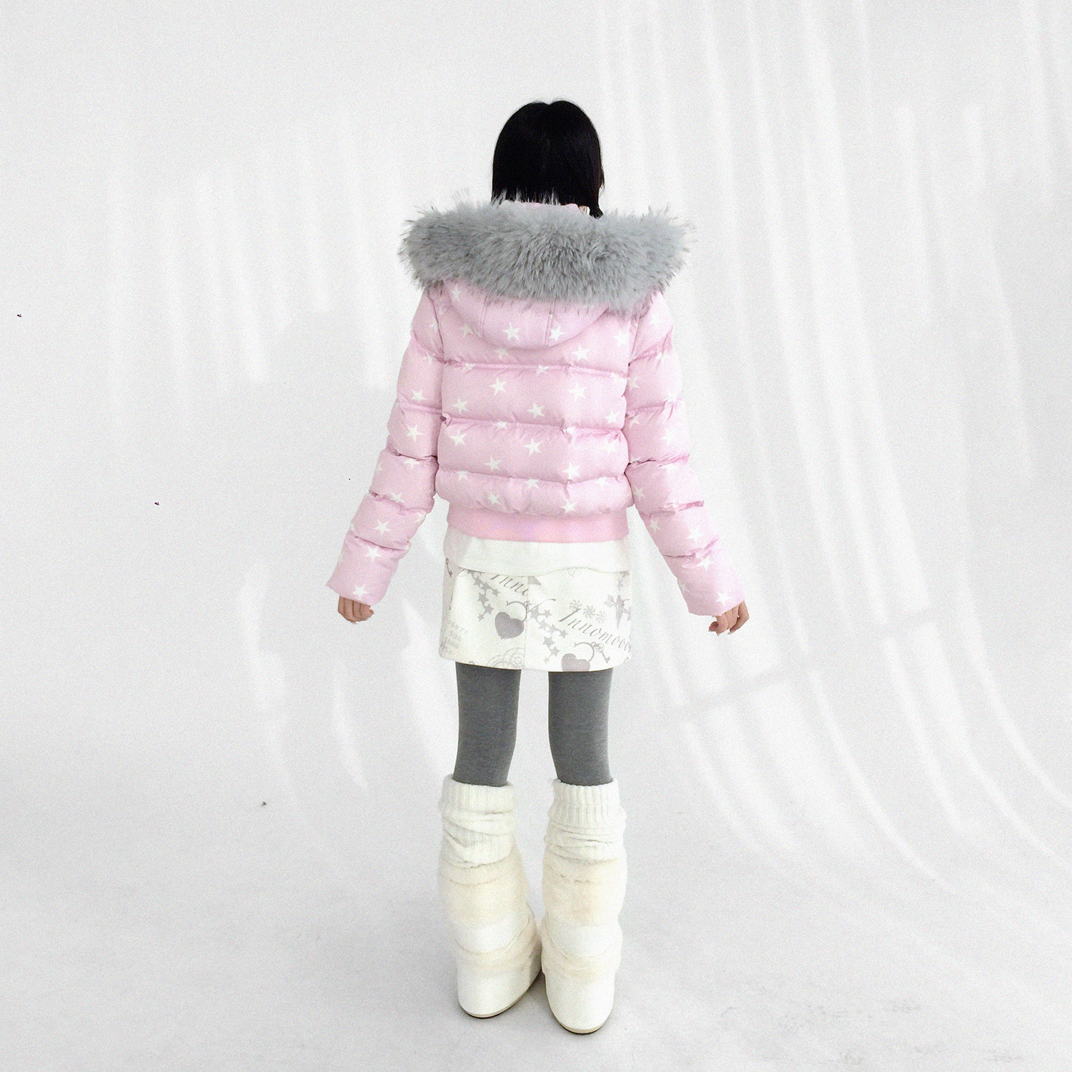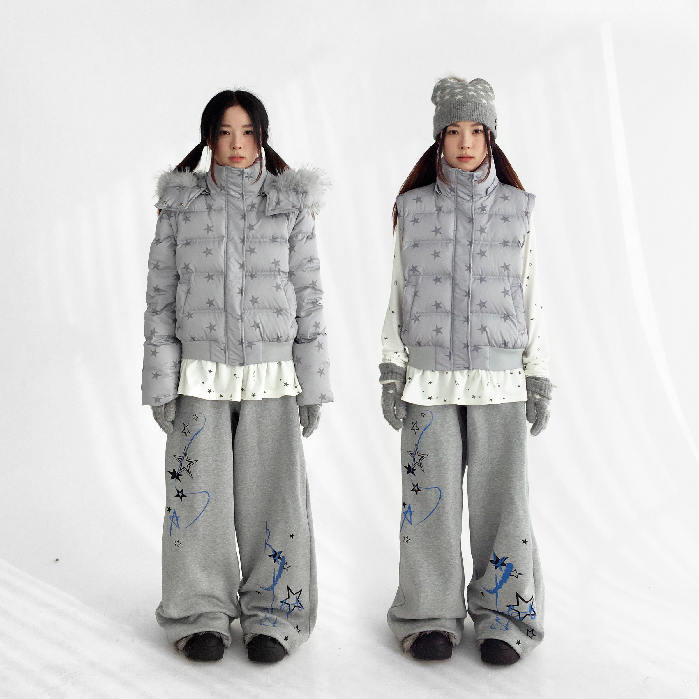 可拆卸星星羽绒服90绒连帽立领马甲毛领 love innomoood twinkle