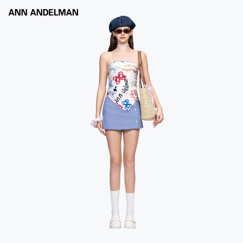 ANDELMAN官方直营细条纹衬衫 解构双层裙短裤 西装 热裤 裙女夏季 ANN