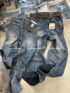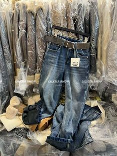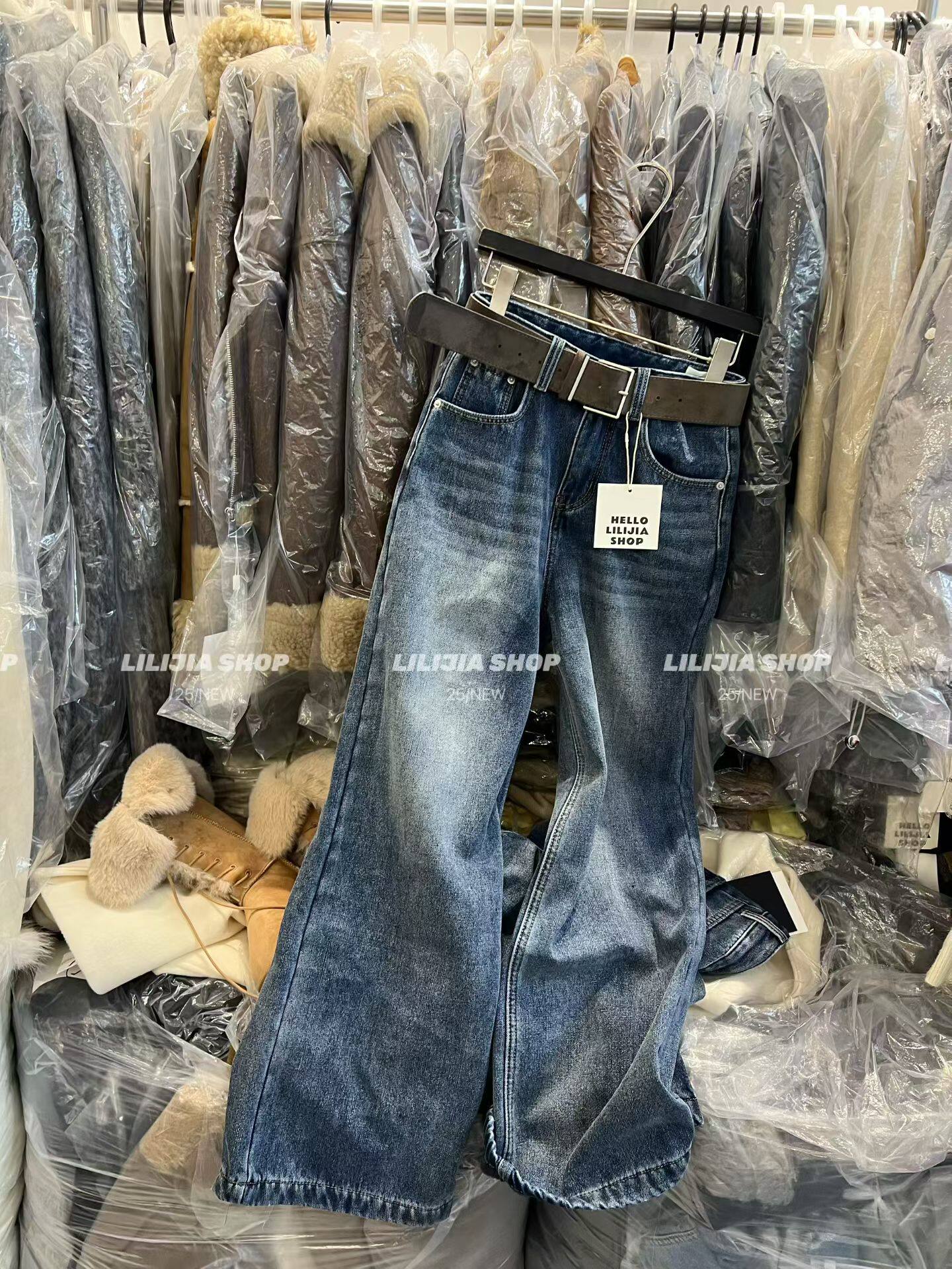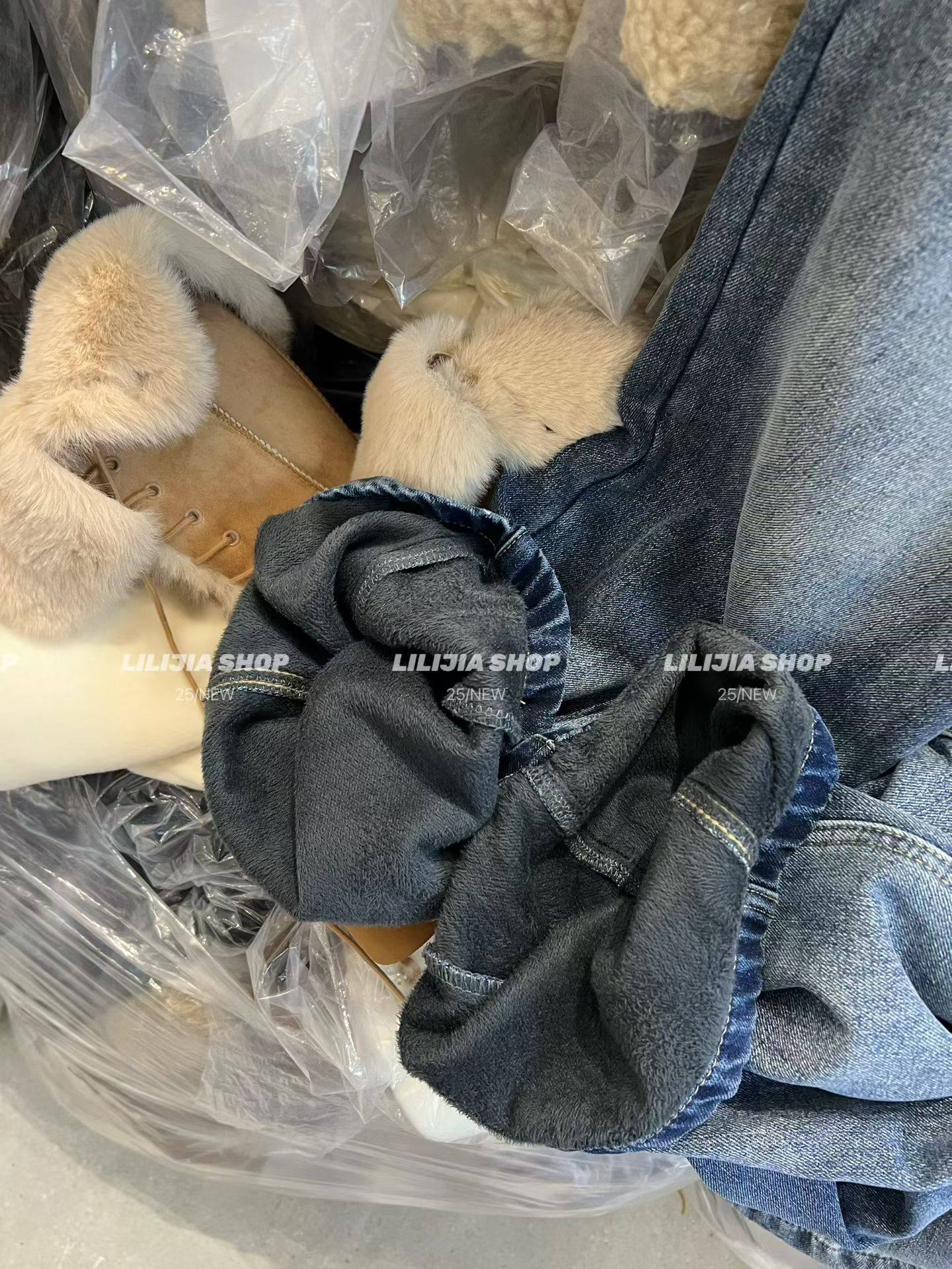 百搭显瘦直筒裤 Miss家 女2025冬季 牛仔裤 牛仔蓝复合绒高腰阔腿裤
