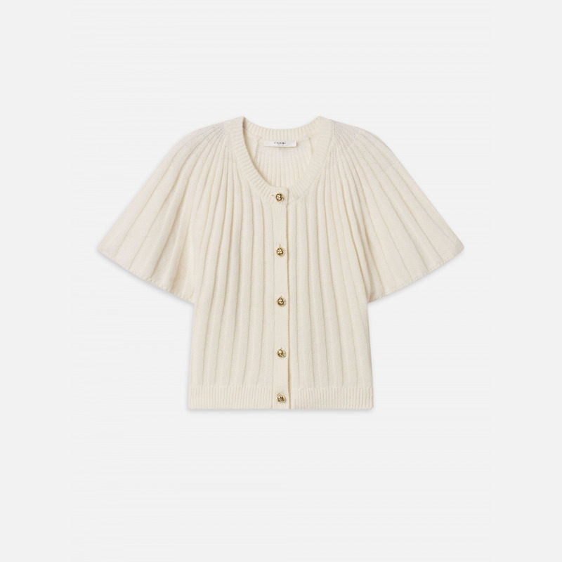 短款 针织开衫 FRAME女士短袖 圆领褶皱设计 2026早春新款
