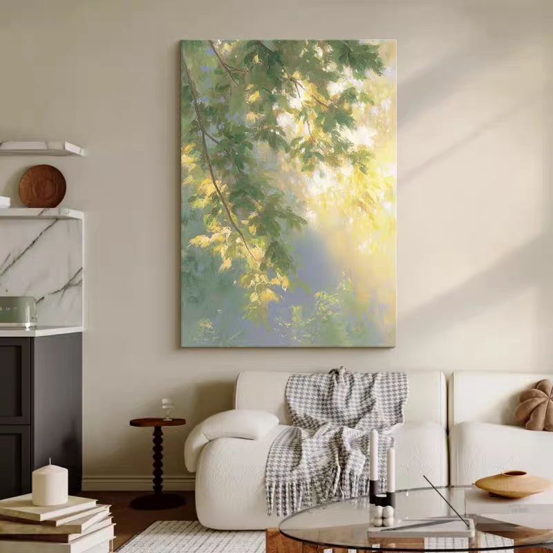 光影绿植装 高级感唯美卧室客厅玄关摆挂画 饰画仿油画风景清新横版