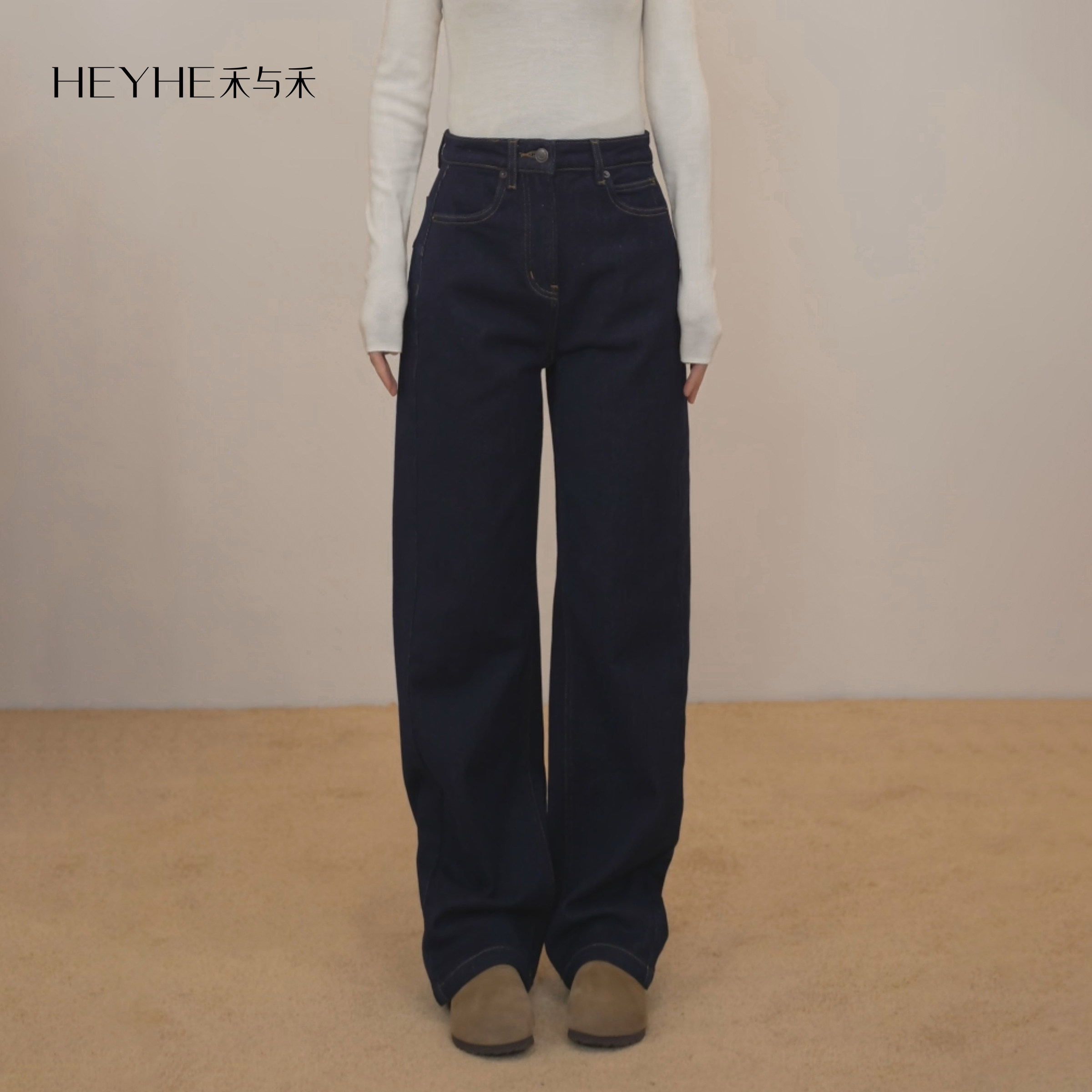 德绒锁温环保洗水保暖空气层微弯刀阔腿牛仔裤 小禾 破茧牛仔