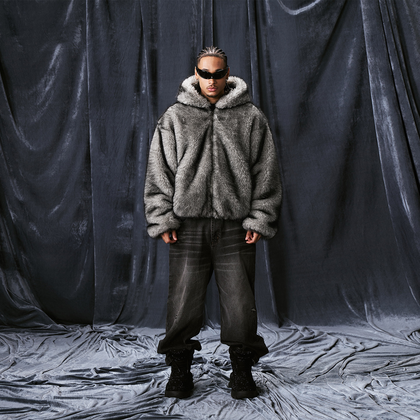 1807 直喷外套复古宽松连帽国潮上衣 STILLGOING系列环保皮草数码