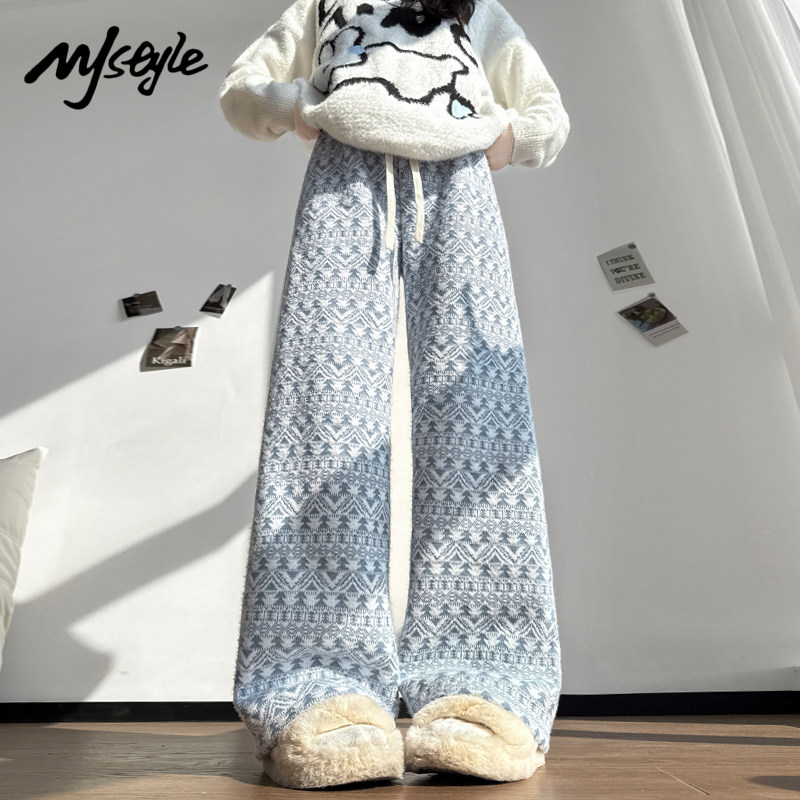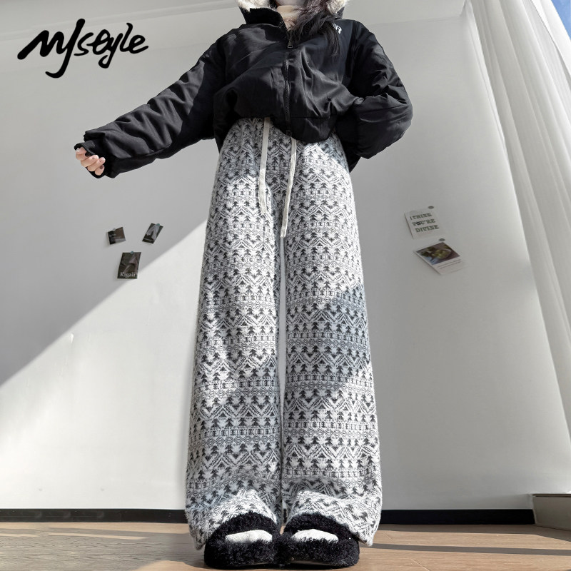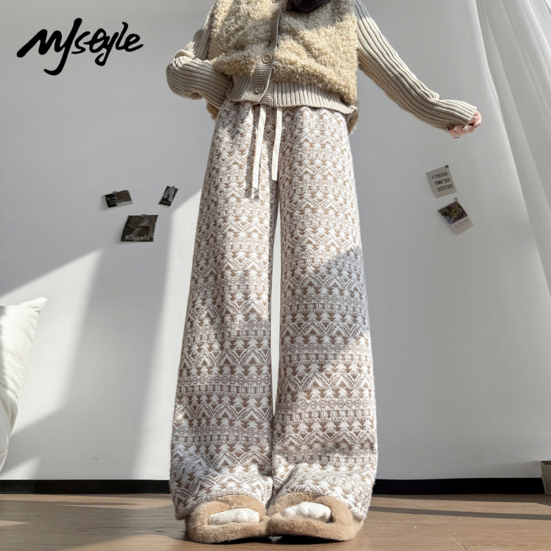 加绒加厚减龄百搭保暖直筒裤 STYLE重工提花针织阔腿女2025冬季