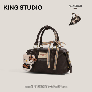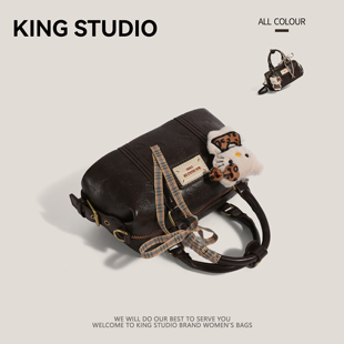 美拉德复古手提保龄球包包女2025新款 小众枕头包百搭斜挎包 潮时尚