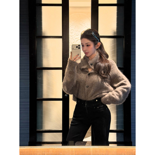 宽松显瘦直筒裤 猫猫家加长女裤 秋冬加绒加厚卡其色高腰弯刀牛仔裤