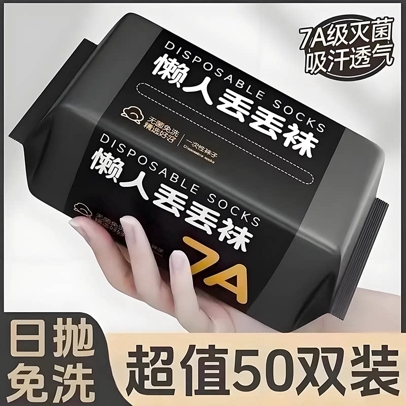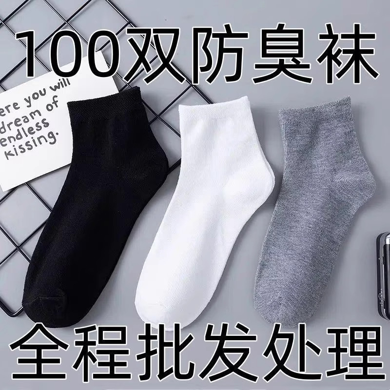 100双一次性袜子男女通用棉防臭日抛免洗船袜旅行秋冬纯旅游黑色