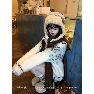 费尔岛冬日红色毛衣女新年穿搭软糯慵懒感针织衫 织物猪 雪绒软糖