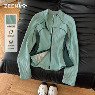 ZEENI户外运动拼接撞色长袖 排汗速干衣骑行徒步健身上衣 t恤女修身