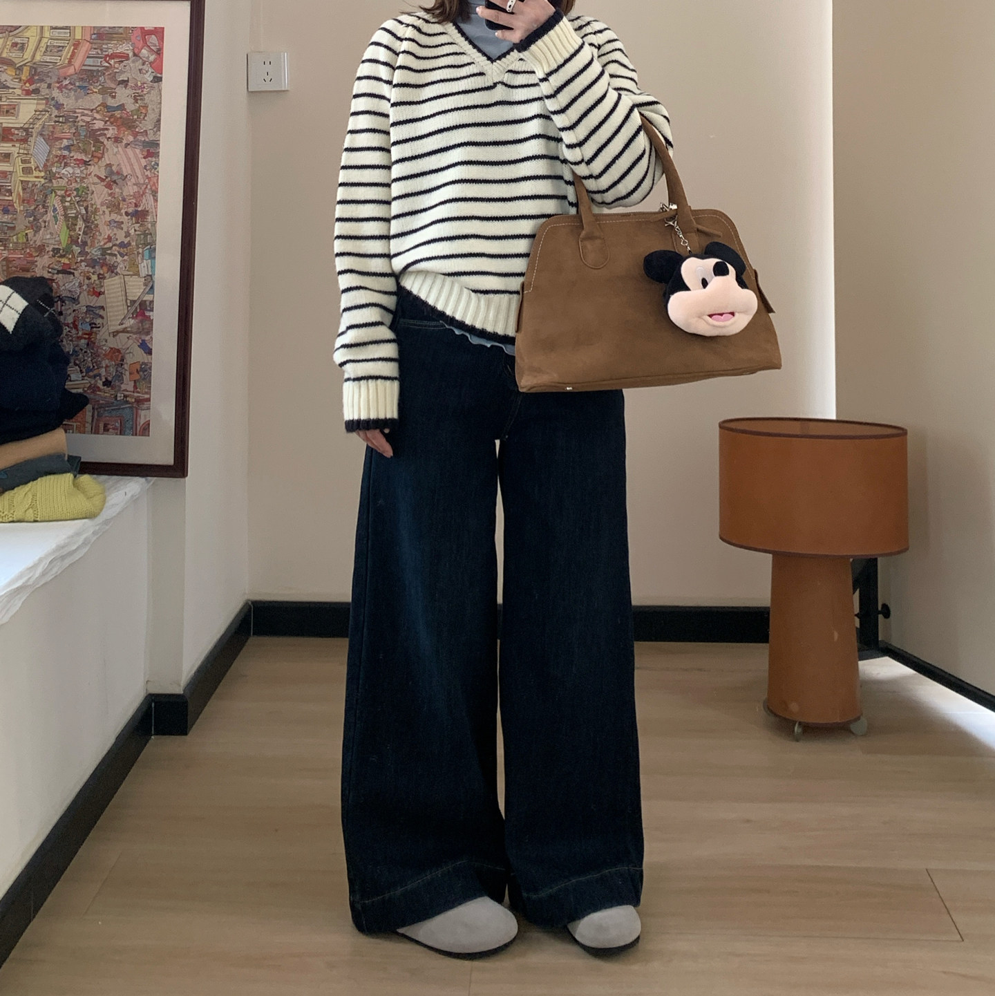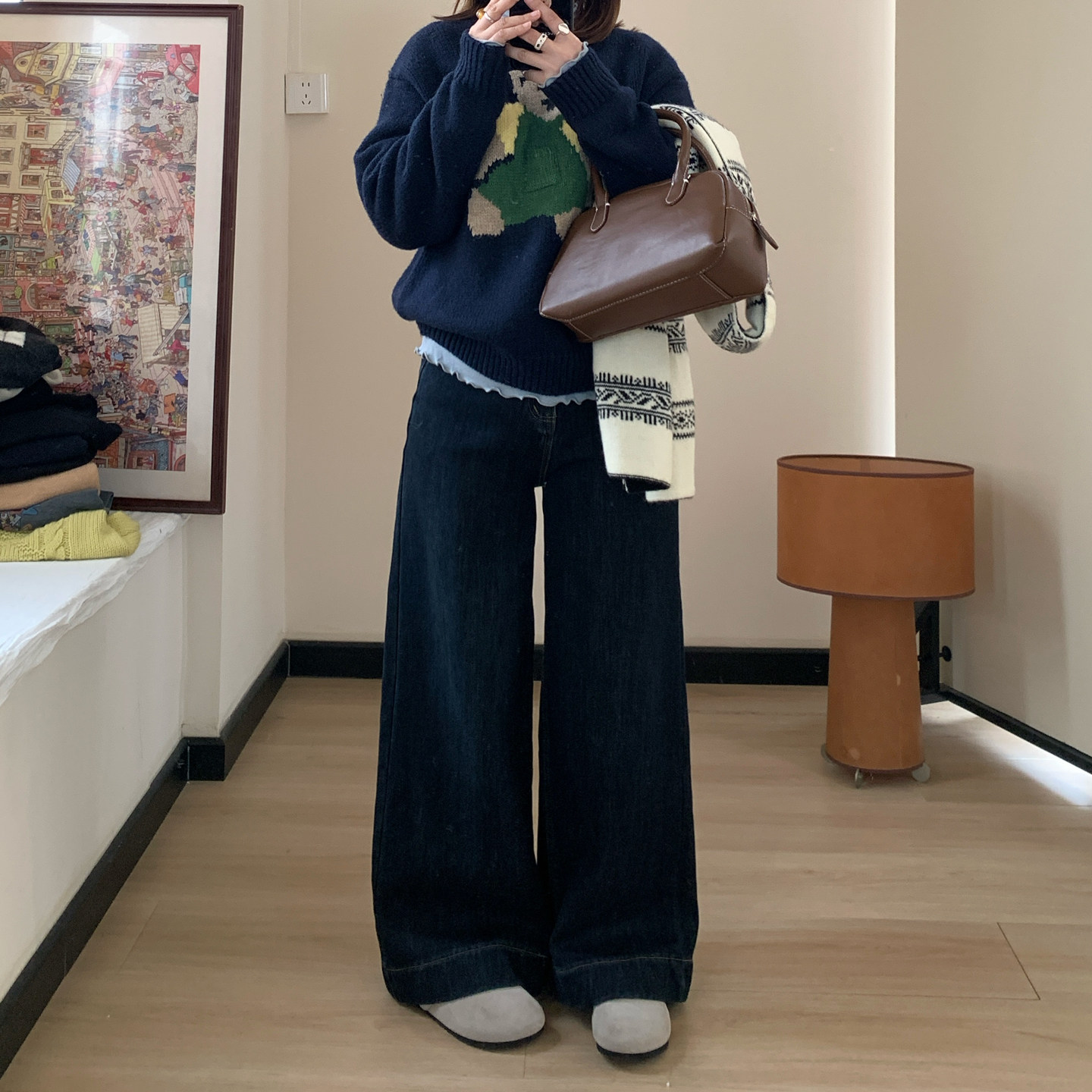 口袋刺绣长裤 复古做旧美式 欧货加绒阔腿慵懒牛仔裤 欧洲站2025冬季