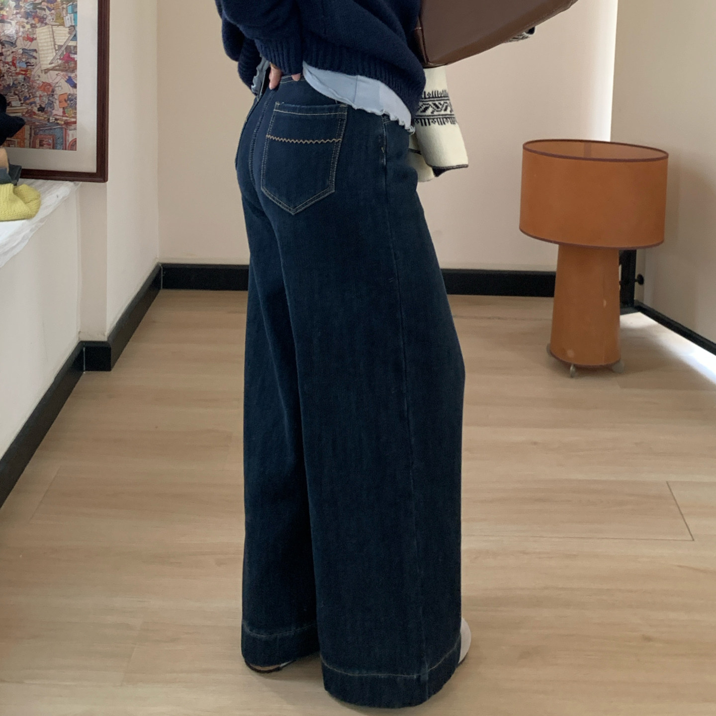 子 女秋宽松加长显瘦拖地阔腿镰刀裤 Pettyelsa美式 复古弯刀牛仔裤
